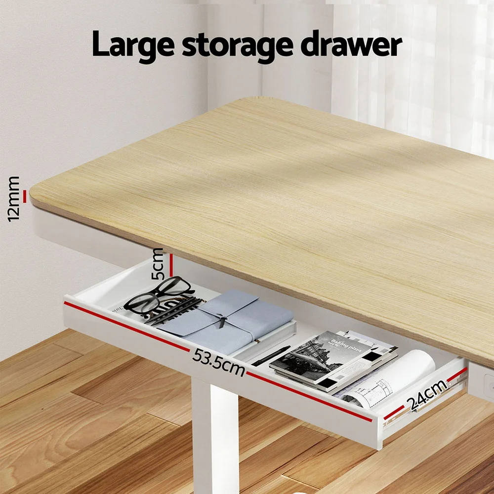Artiss Motorised Sit Stand Desk - White Oak 140cm | Adjustable, Eco-Friendly, Quiet Operation for Home & Office