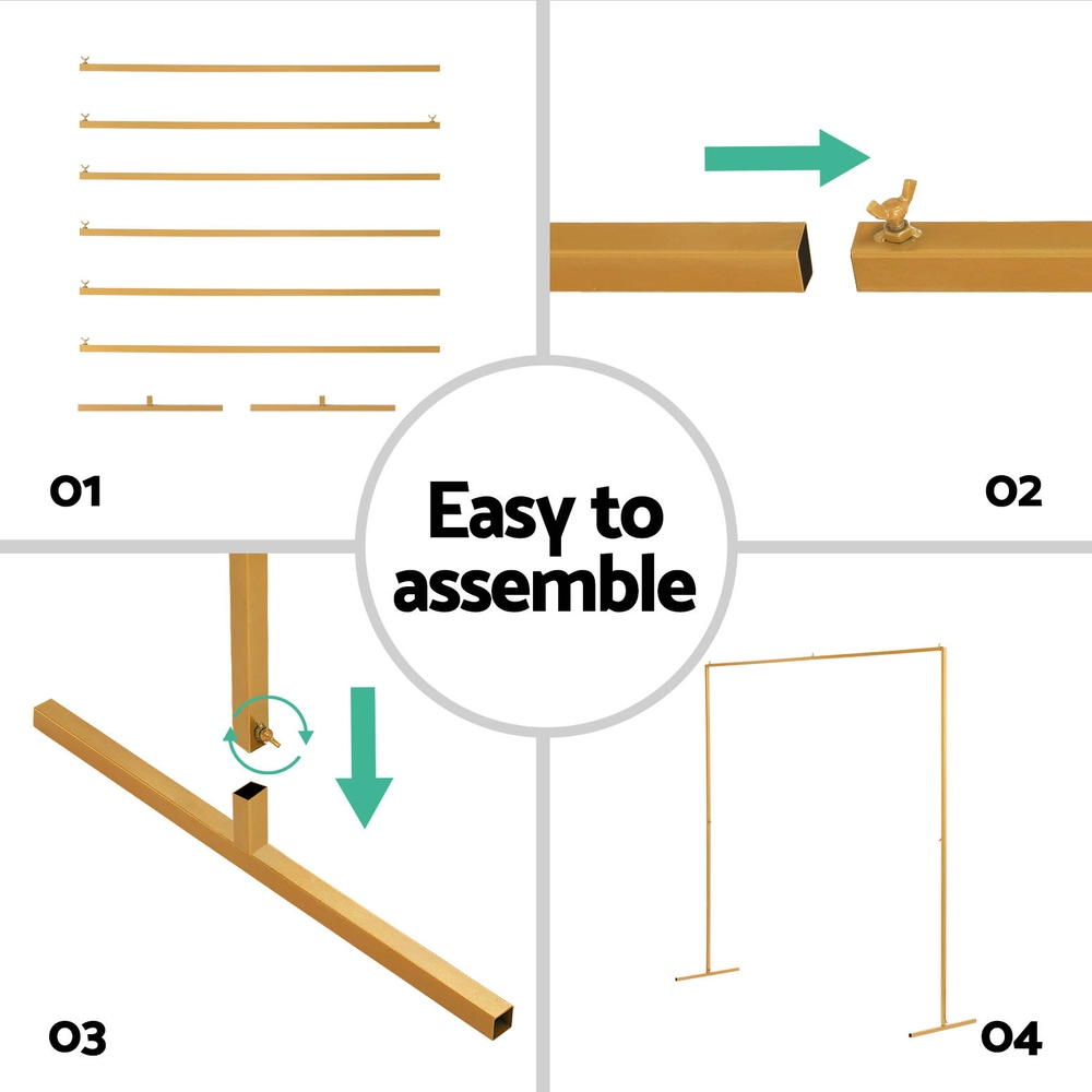 2M Gold Metal Backdrop Stand for Wedding Party, Flower Balloon Display, Easy Assembly, Stable Frame, Elegant Décor