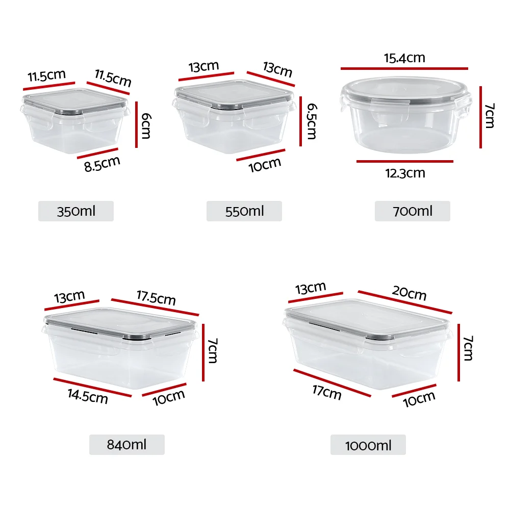 5-Star Chef 16-Piece BPA-Free Food Storage Container Set, Airtight, Stackable, Microwave Safe, 350ml-1000ml