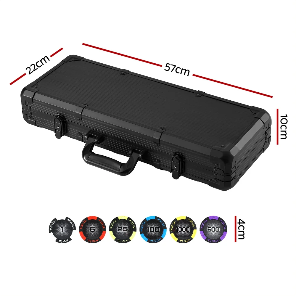 500PC Poker Chip Set - 14g Double Injection Iron Core Chips, Aluminium Case, Cards & Dice for Casino Nights