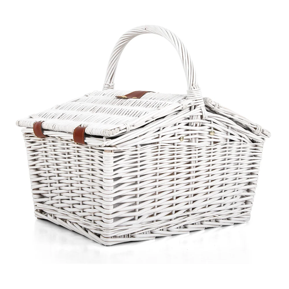 Alfresco 2 Person Picnic Basket Set, Willow & Faux Leather, 36x22x38cm, White, Insulated Blanket, Outdoor Essentials
