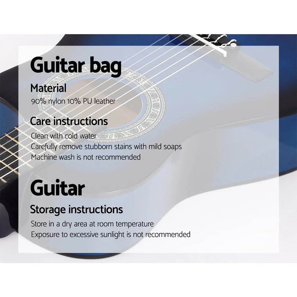 Alpha 34 Inch Classical Guitar, Wooden Body, Nylon Strings, Blue, Beginner Kids Gift, Includes Picks & Carry Bag