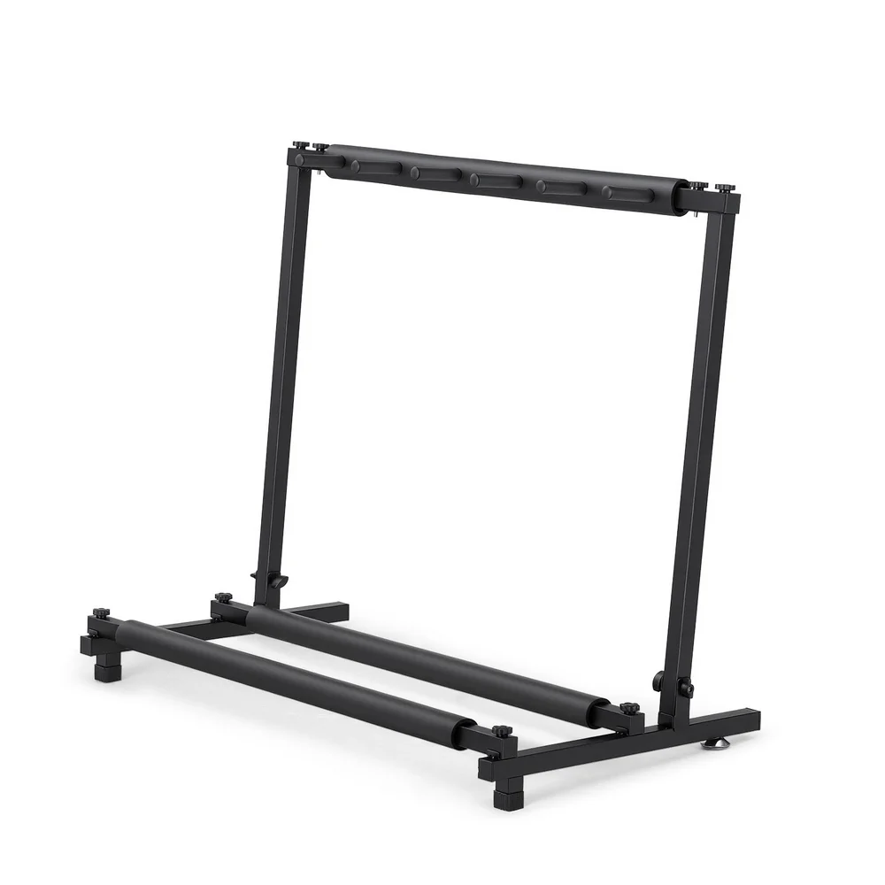 Maximise your musical space with the Alpha 5 Space Folding Guitar Stand Rack Holder Display. This essential accessory, crafted for musicians, securely holds up to 5 guitars with soft foam padding to prevent scratches. Its compact, foldable design is perfect for studios or stages, accommodating both acoustic and electric guitars with ease. Enjoy the durable iron construction, adjustable feet for stability, and a sleek black finish that complements any setting. Quick to assemble and designed to save floor space, it’s a practical solution for organising your instruments. Plus, it’s backed by a 1-year warranty for peace of mind.