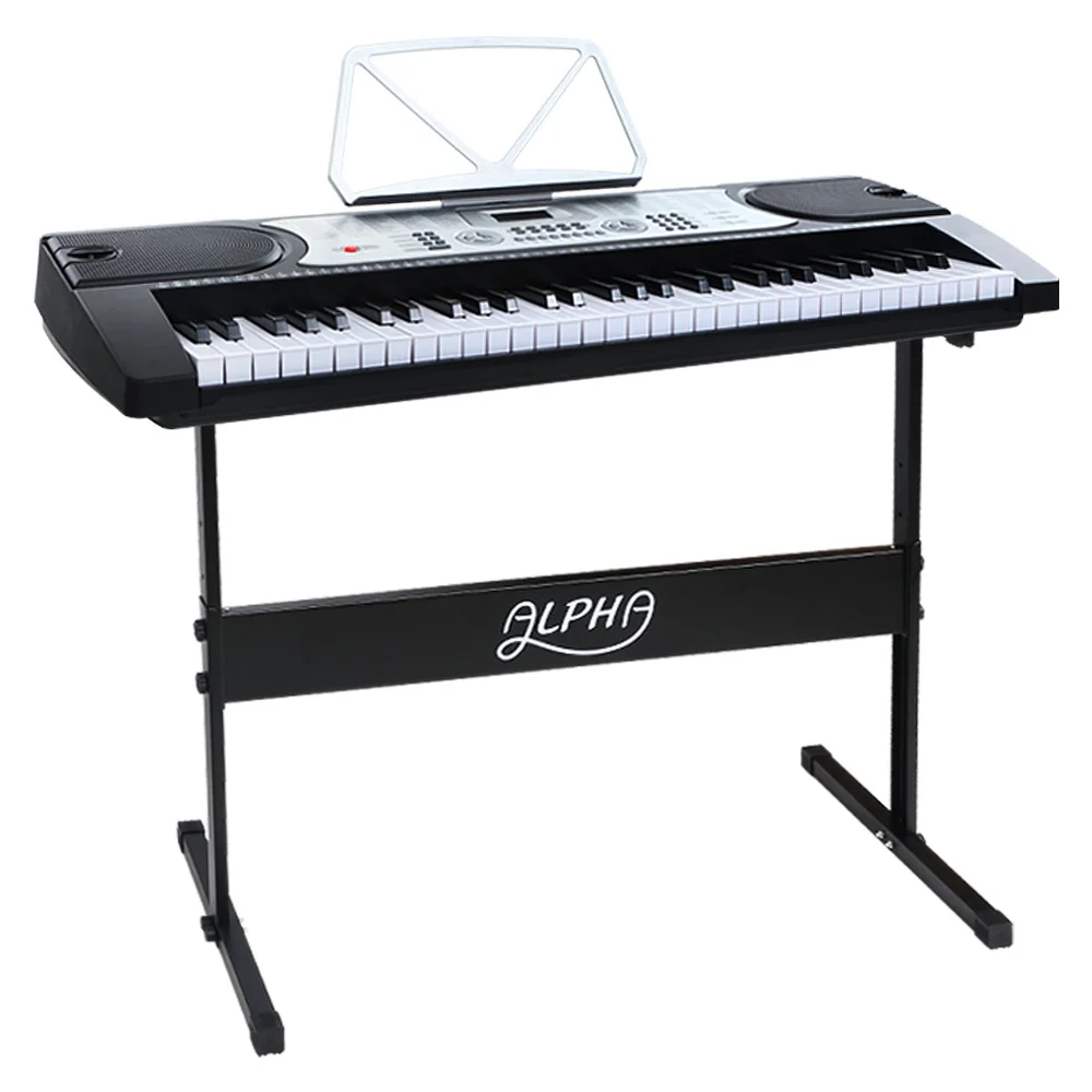 Alpha 61-Key Electronic Piano Keyboard with Stand, Digital Electric, LED Display, USB, Mic Input, Silent Practice