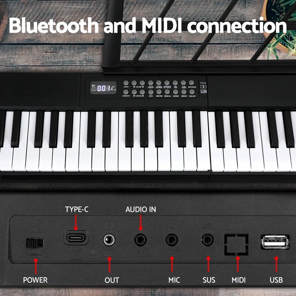 Alpha 61-Key Electronic Piano Keyboard with Stand, Lighted Keys, Black, 93x34x11cm, Digital Electric Music Instrument