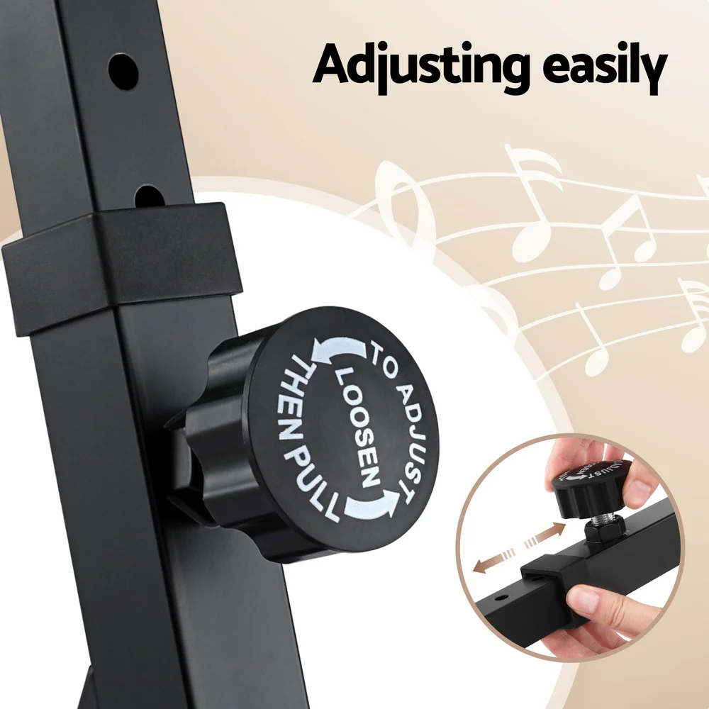The Alpha Heavy Duty Adjustable Piano Stand is engineered for serious musicians. Its robust Z-frame steel construction with lockable wheels ensures secure, stable support for digital pianos 60cm and longer. Easily adjust width (59-89cm) and height (62-92cm) for perfect ergonomic setup. Non-slip rubber pads, secure straps, and a handy headphone hook keep your gear protected and organised. Featuring quick-release mechanisms, this stand is portable, reliable, and ideal for stage or studio use.