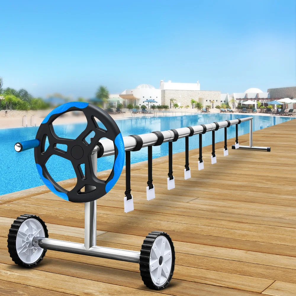 Aquabuddy Pool Cover Roller 5.5m Adjustable Aluminium Solar Blanket Reel Blue with Non-Slip Crank and Straps