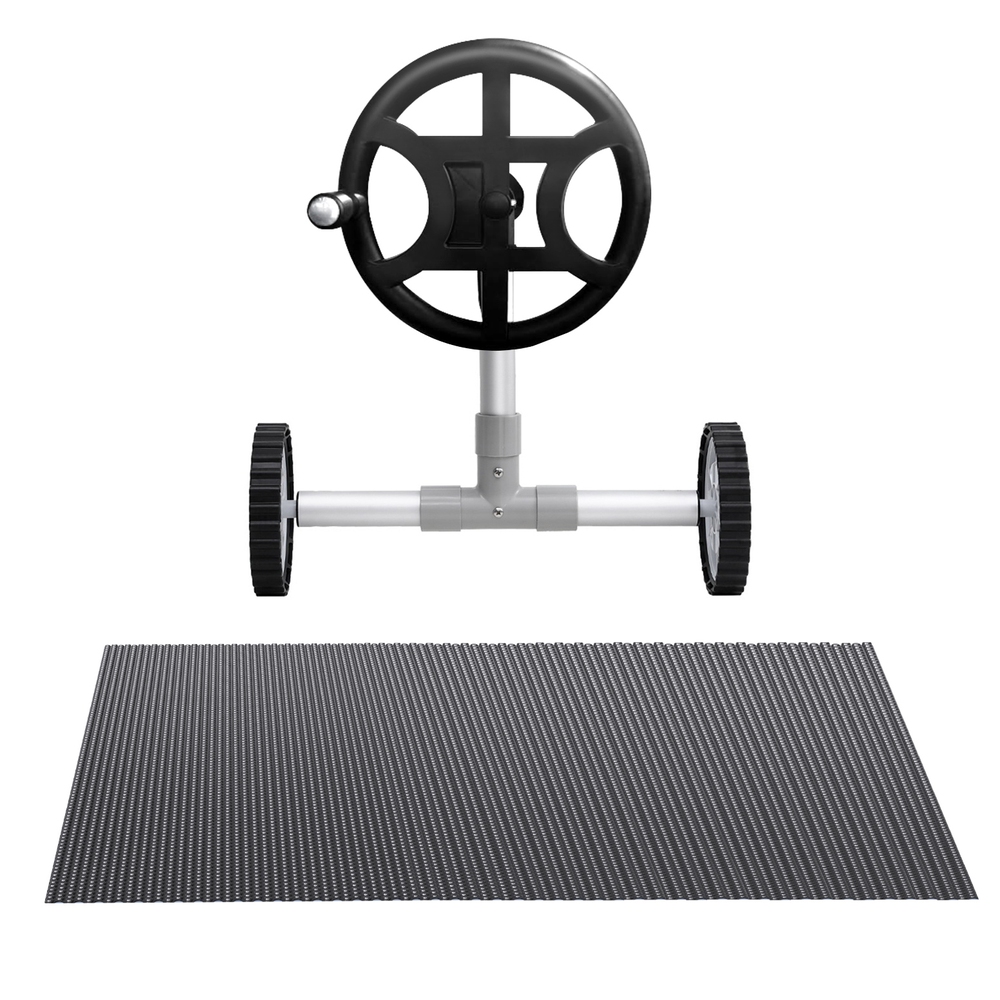 Aquabuddy 7x4m 600 Micron Solar Pool Cover and 4m Aluminium Roller Set, Blue/Black, UV Resistant, Reduces Evaporation