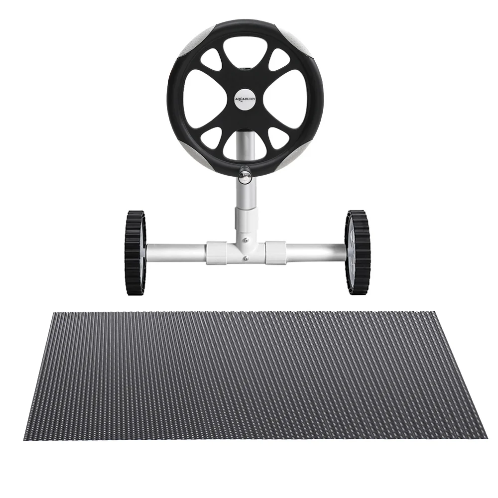 Aquabuddy 7x4m 600 Micron Solar Pool Cover & Adjustable Aluminium Roller Set, Blue/Black, Fits up to 5.55m Pools