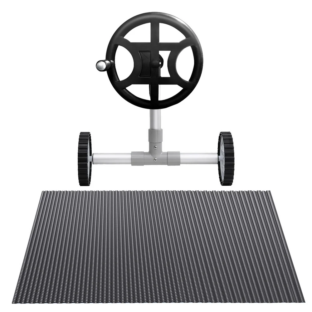 Aquabuddy 10x4m 600 Micron Black Solar Pool Cover with 5.55m Adjustable Aluminium Roller, UV Resistant Blanket