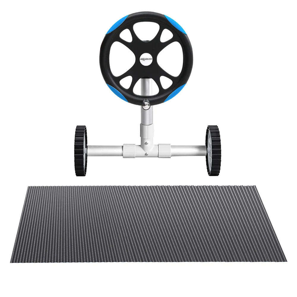 Aquabuddy 600 Micron Solar Pool Cover & Aluminium Roller Set 9.5x5m | Black Solar Blanket Reduces Evaporation