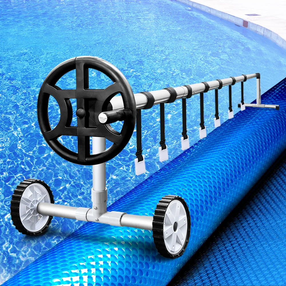 Aquabuddy 10x4m 600 Micron Solar Pool Cover with Adjustable Aluminium Roller, Blue/Black, Fits Pools up to 5.55m