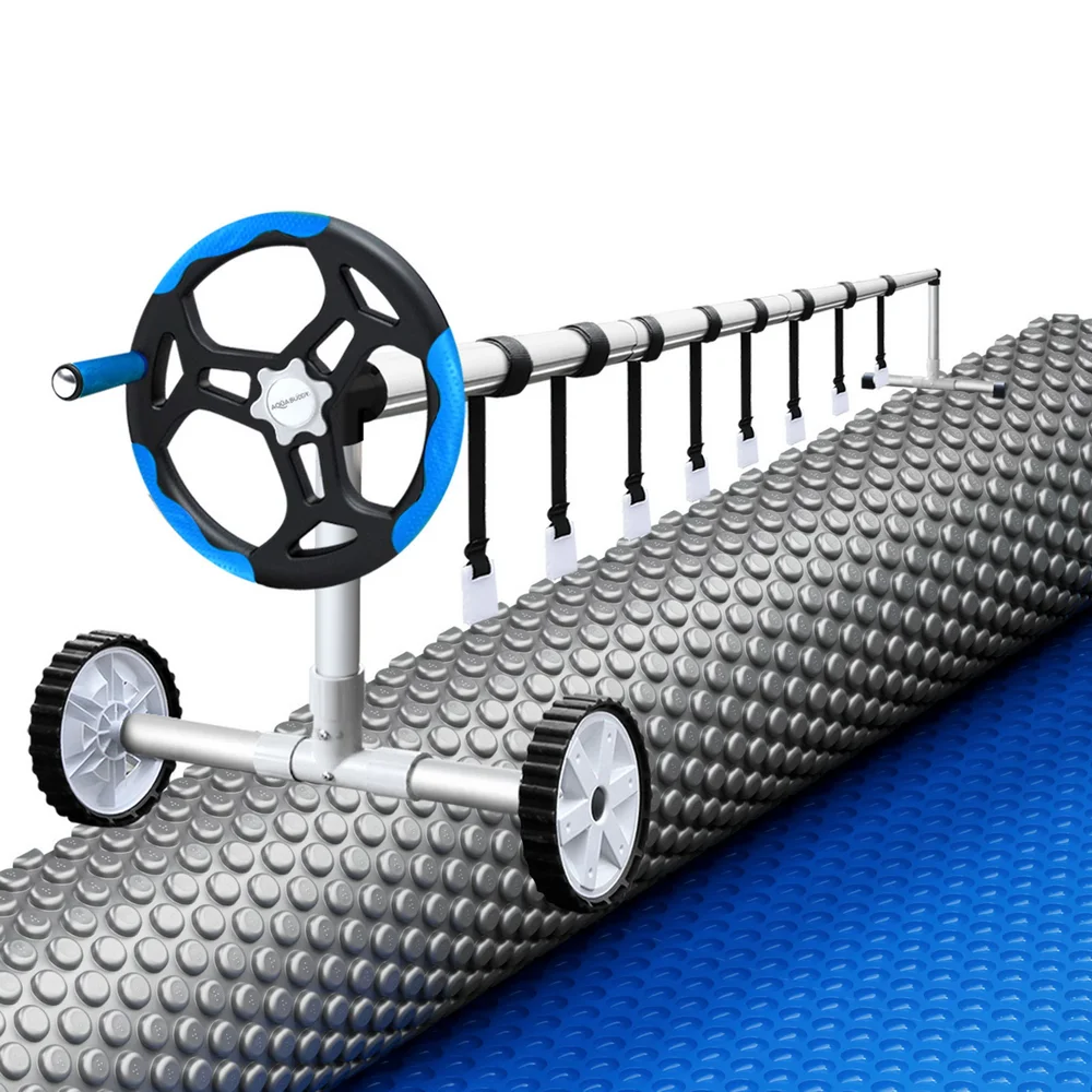Aquabuddy Pool Cover & Roller Set, Aluminium, 9.5x5m, Blue/Silver, Solar Blanket, Keeps Pool Clean & Warm