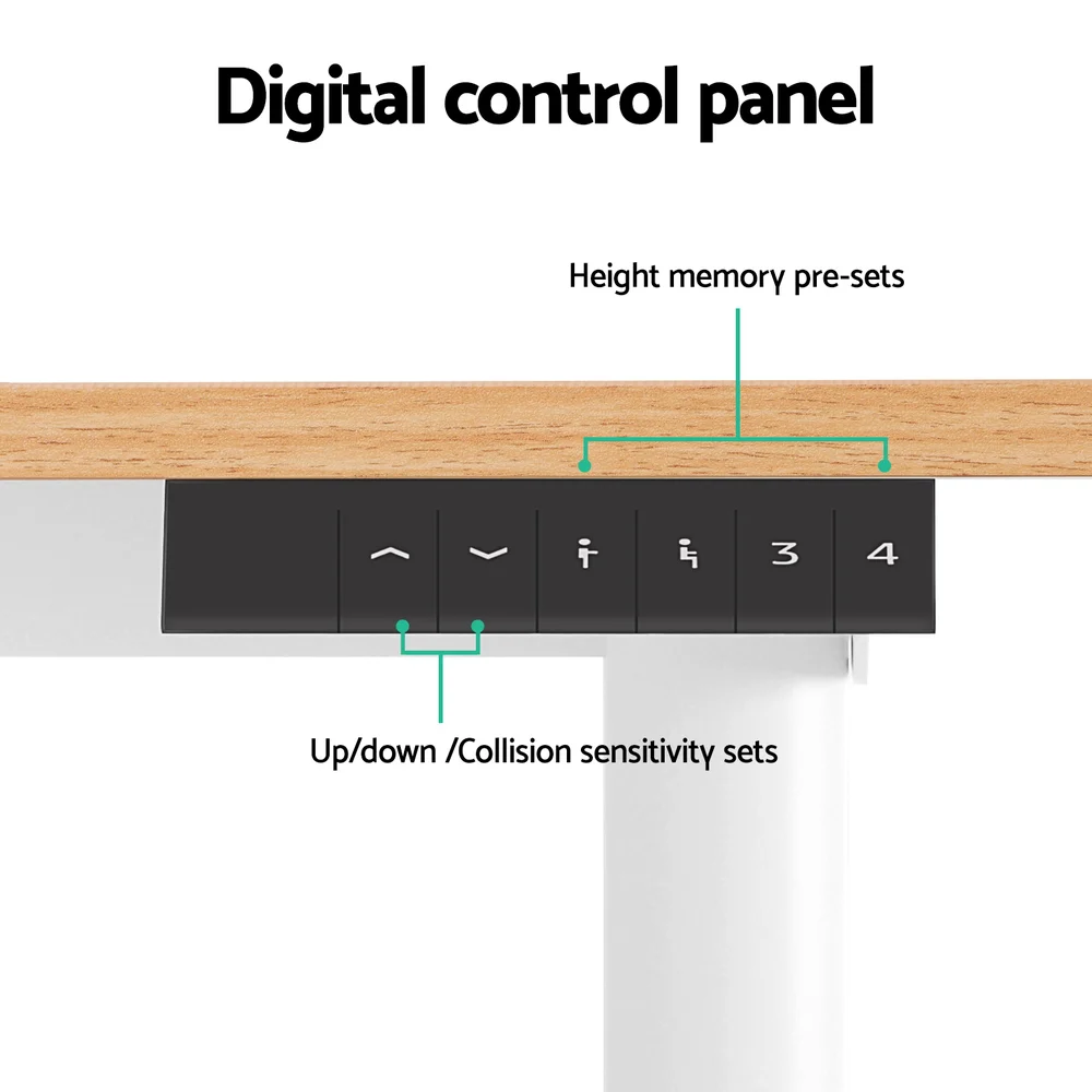 Artiss Motorised Standing Desk, Particle Board, 140cm, White Oak, Adjustable Frame, Eco-Friendly, Anti-Scratch Finish