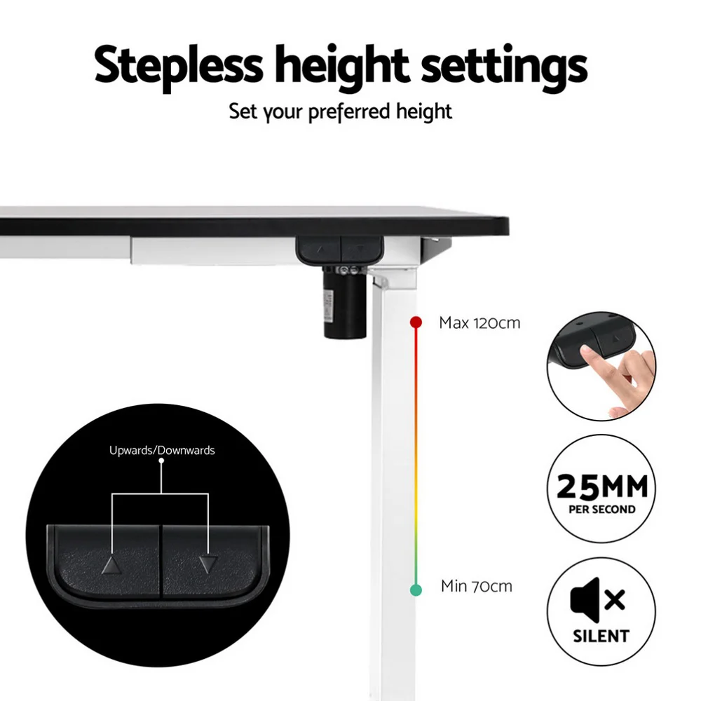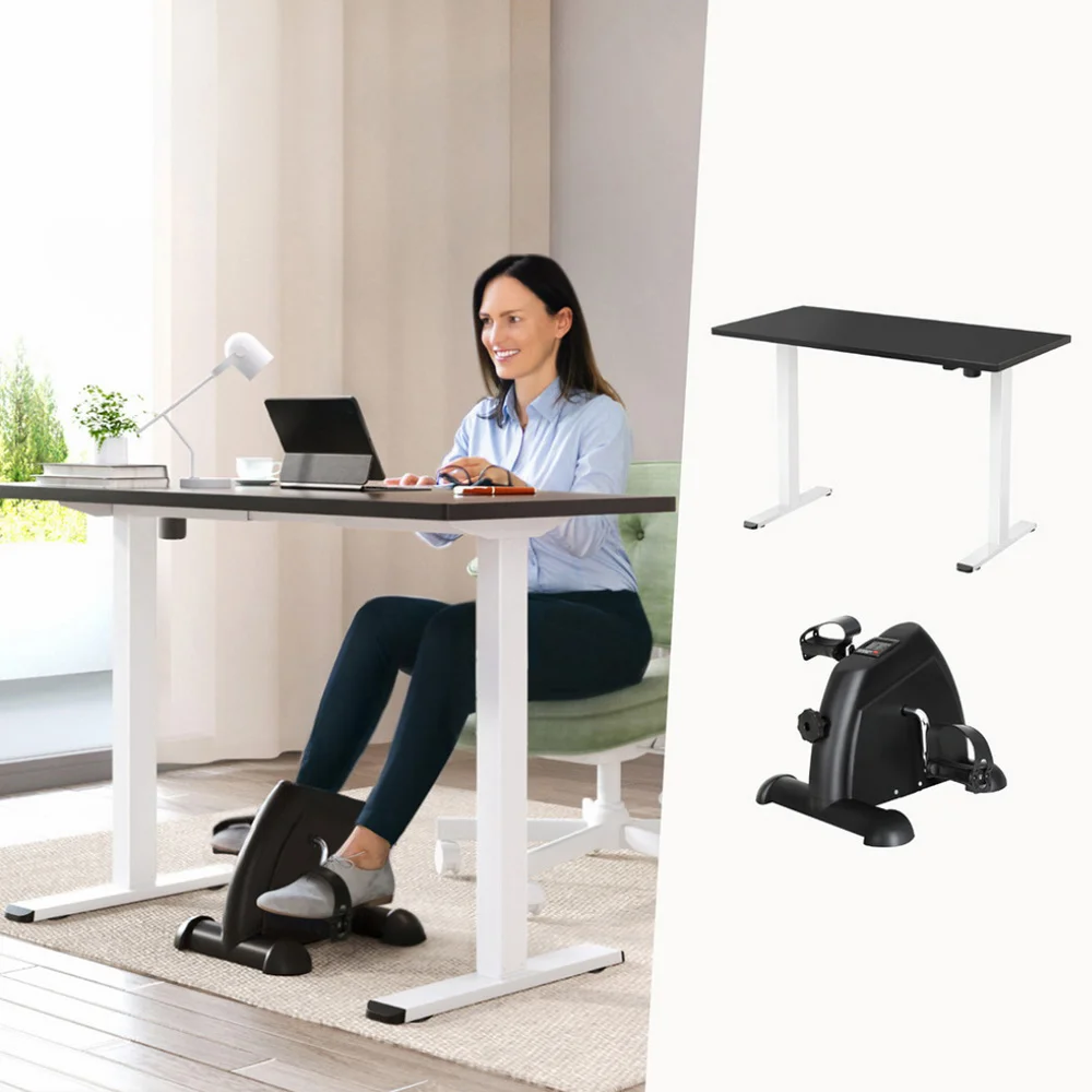 140cm Artiss Electric Standing Desk with Black Desktop and Everfit Mini Pedal Exercise Bike for Home Office Fitness