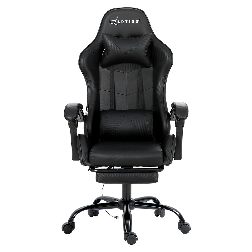 Experience ultimate comfort with the Artiss 2 Point Massage Gaming Office Chair. Designed for gamers and professionals, it features ergonomic support, premium PVC leather, and high-density padding. Enjoy a soothing massage with two vibration points targeting your back, while the adjustable headrest and retractable footrest offer personalised relaxation. With a 145-degree recline, 360-degree rotation, and smooth mobility, this chair elevates your work and play.