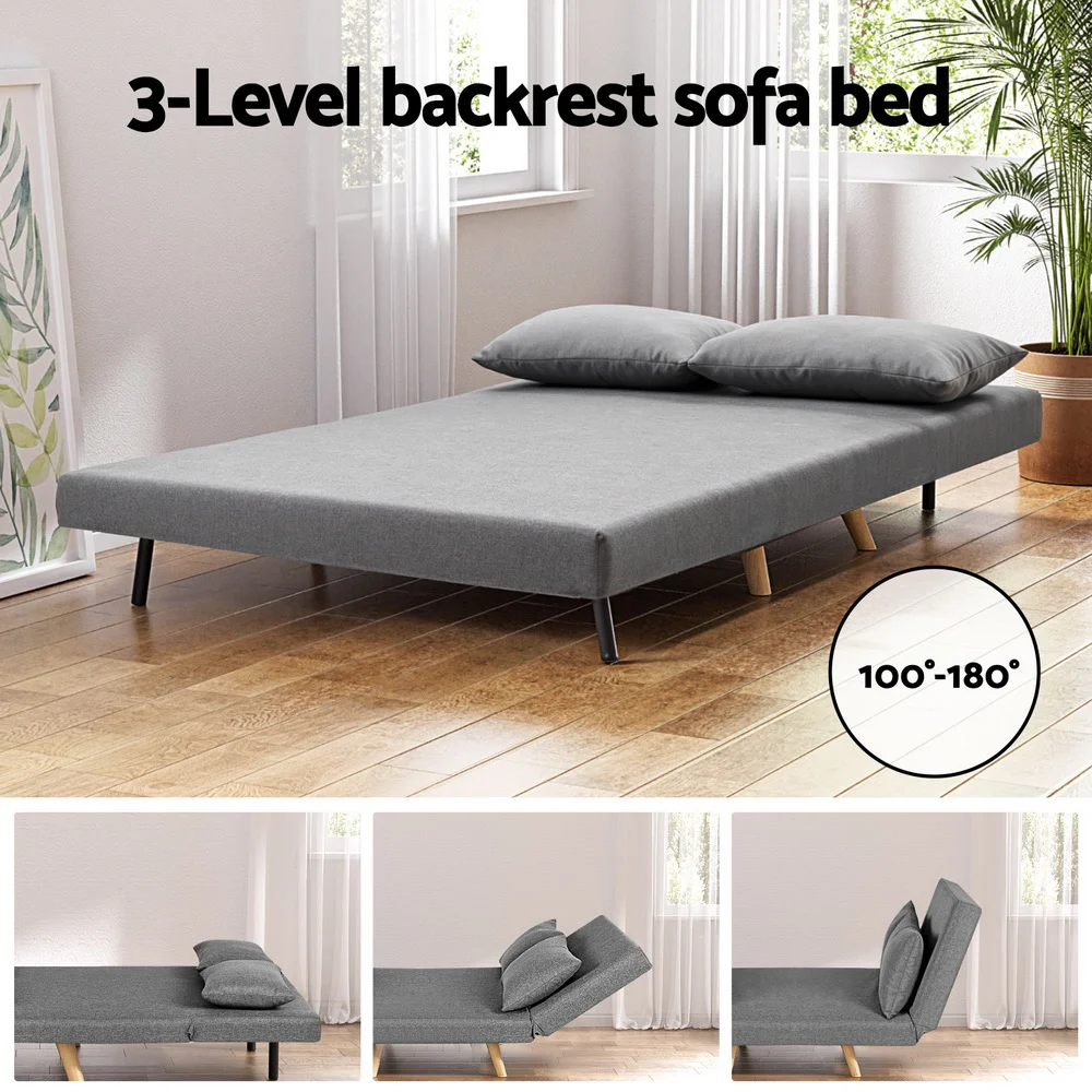 Artiss 2 Seater Sofa Bed Convertible Couch Recliner, Grey Linen, 240kg, Adjustable Split Backrest, 183cm