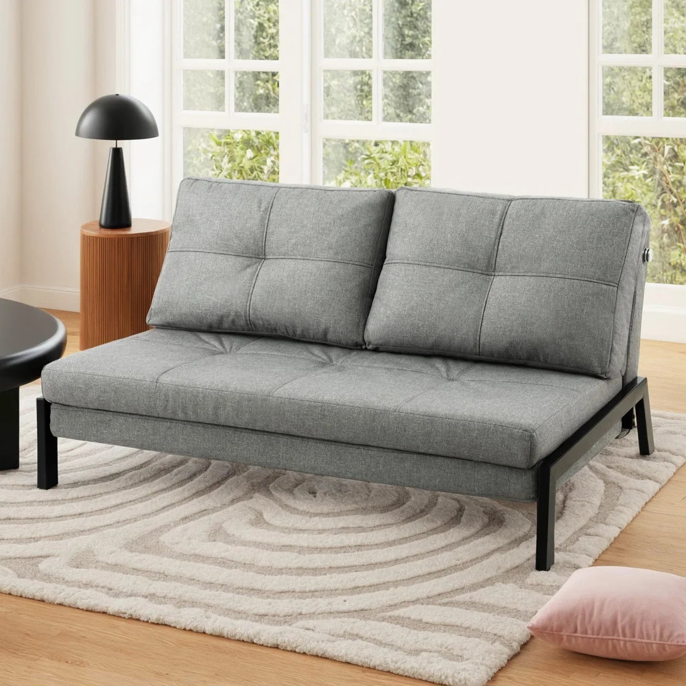 Artiss 2-Seater Sofa Bed - Convertible Linen Couch Recliner, Steel Frame, 300kg Capacity, Grey, Easy Assembly