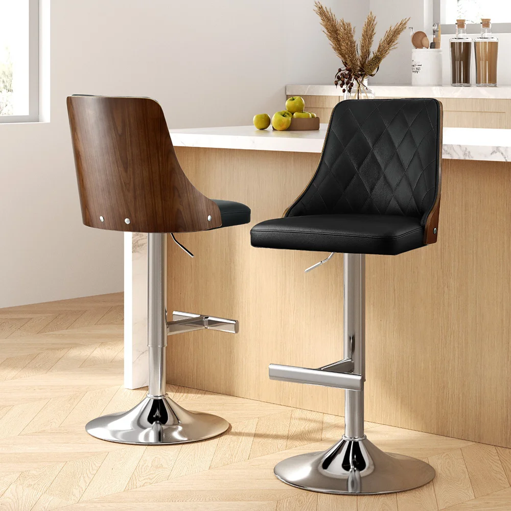 Artiss 2x Anton Bar Stools - Black PU Leather, Gas Lift, Swivel, Chrome Base, 59-81cm Height, Anti-Scratch Protector