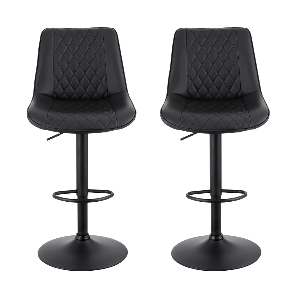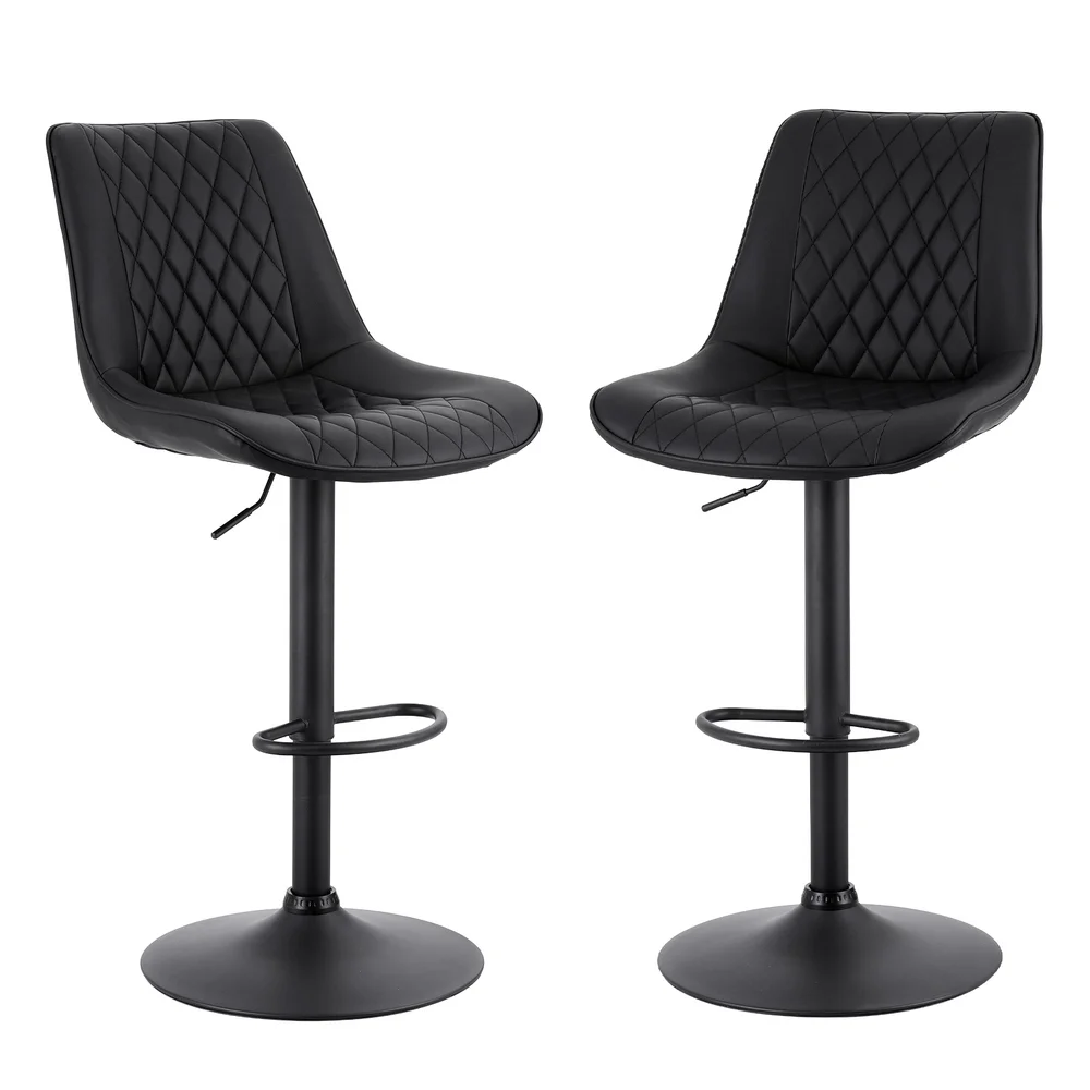 Artiss 2x Black Diamond Leather Bar Stools - Adjustable Swivel Gas Lift, Ergonomic Design, 120kg Capacity, Easy Assembly
