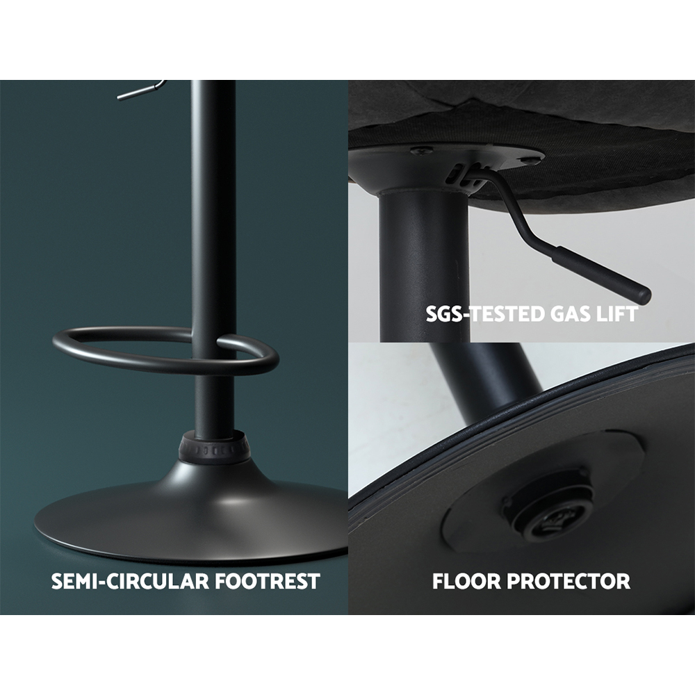 Artiss 2x Fynn Bar Stools, PU Leather, Adjustable Gas Lift, 360° Swivel, Black, 38cm Base, 53-78.5