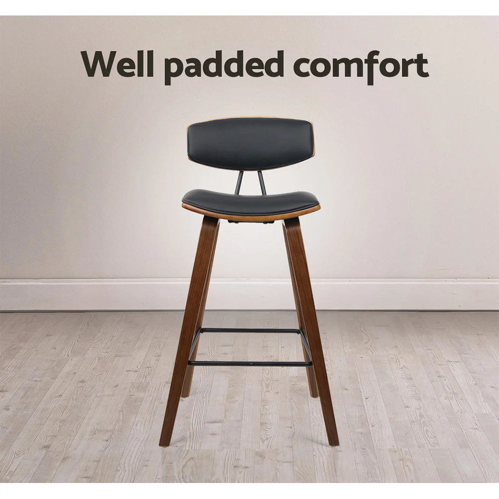 Experience the perfect blend of style and comfort with the Artiss 2 Bar Stools. These Bentwood Bar Stools are crafted with a stunning walnut-finished solid wood frame and complemented by a plush faux leather seat and backrest for ultimate comfort. The wide curved backrest offers excellent support, while anti-slip rubber pads ensure stability. A powder-coated metal footrest adds a touch of modern flair, making these stools ideal for any home, office, bar, or cafe setting. Elevate your space with Artiss today.