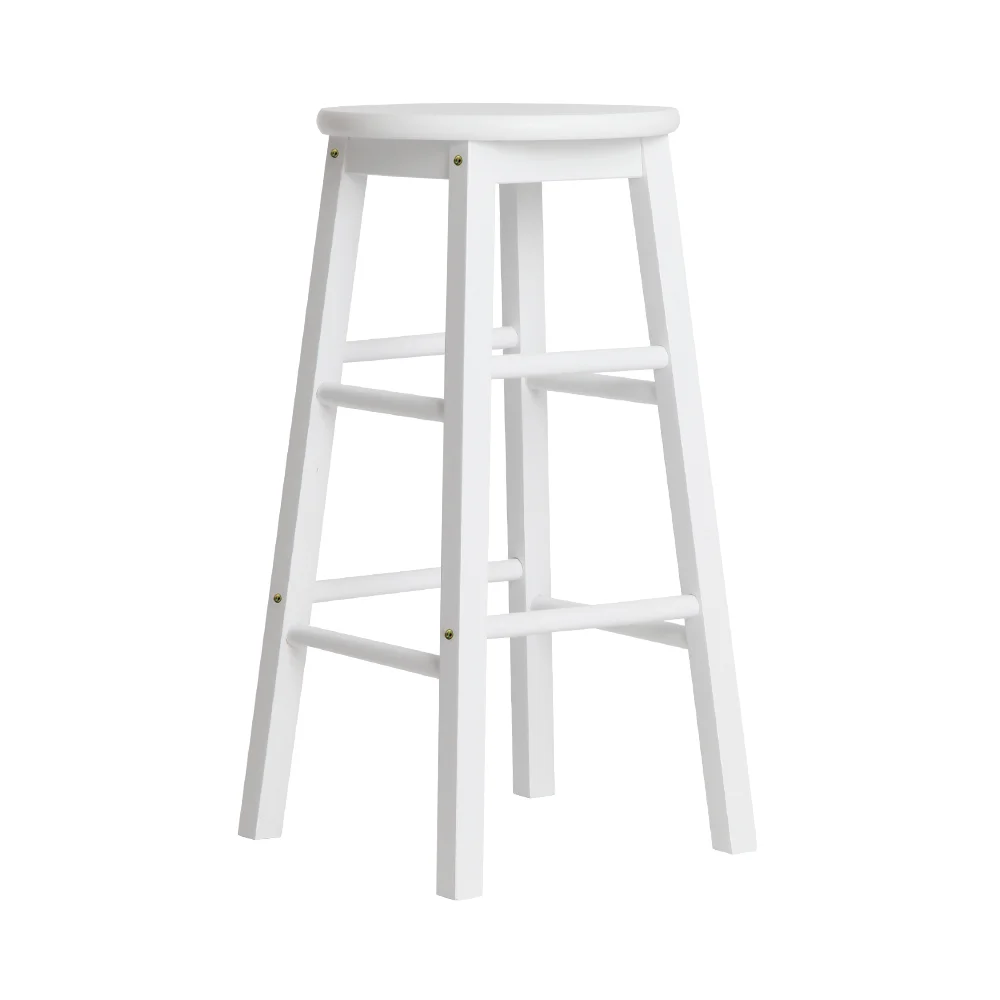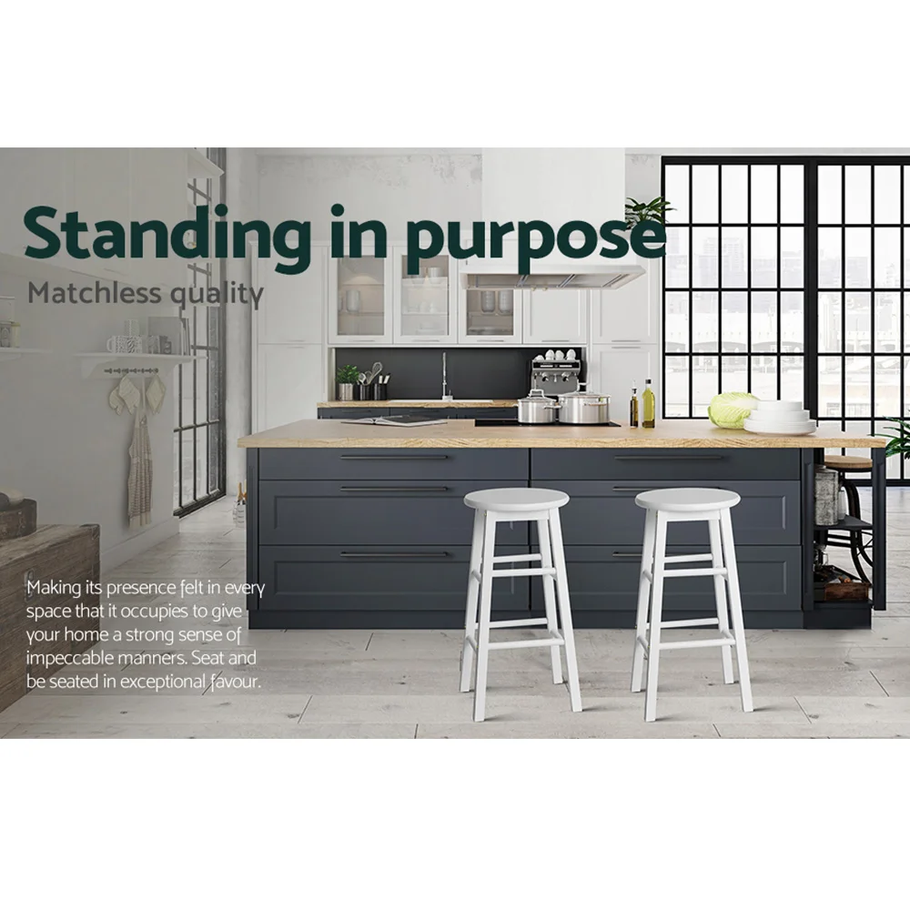 Artiss 2x White Wooden Bar Stools - Solid Beech Wood, 61cm Height, Anti-Slip Feet, Set of 2, Sturdy Round Chairs