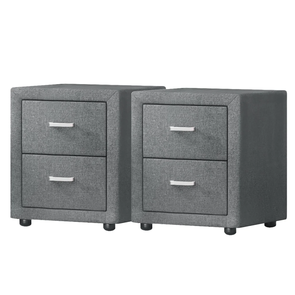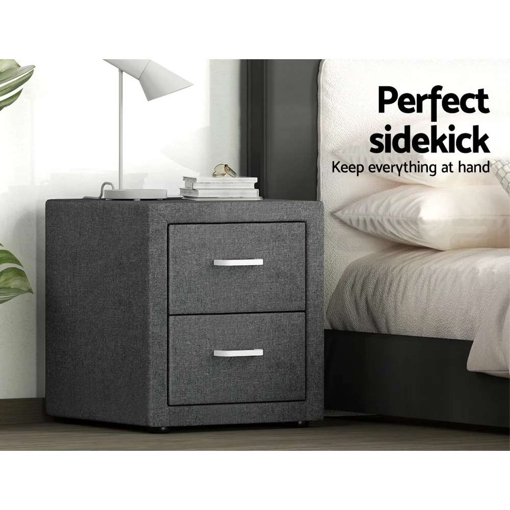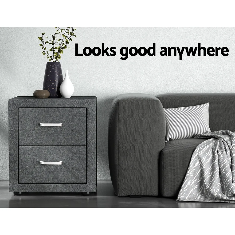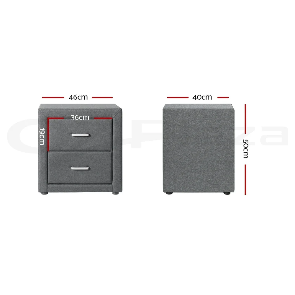Artiss Caden Grey Bedside Table Set of 2 with Fabric, 2 Drawers, MDF Frame, 46x40x50cm - Modern Bedroom Side Table