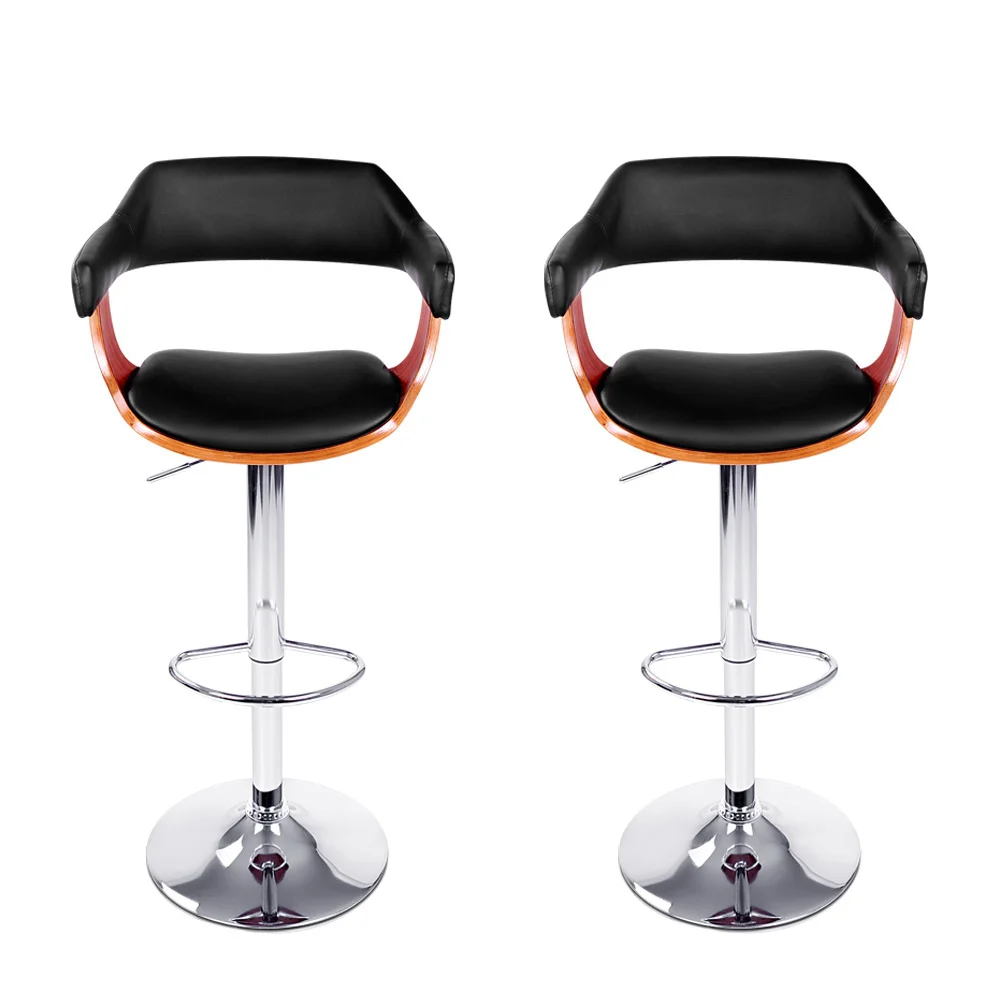 Artiss 2x Selina Bar Stools - Swivel PU Leather, Chrome Base, Gas Lift, Armrest, 90-110cm Adjustable Height, Black