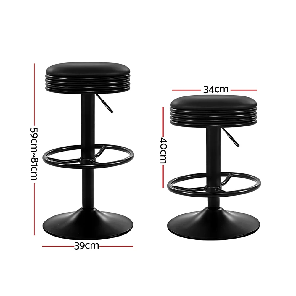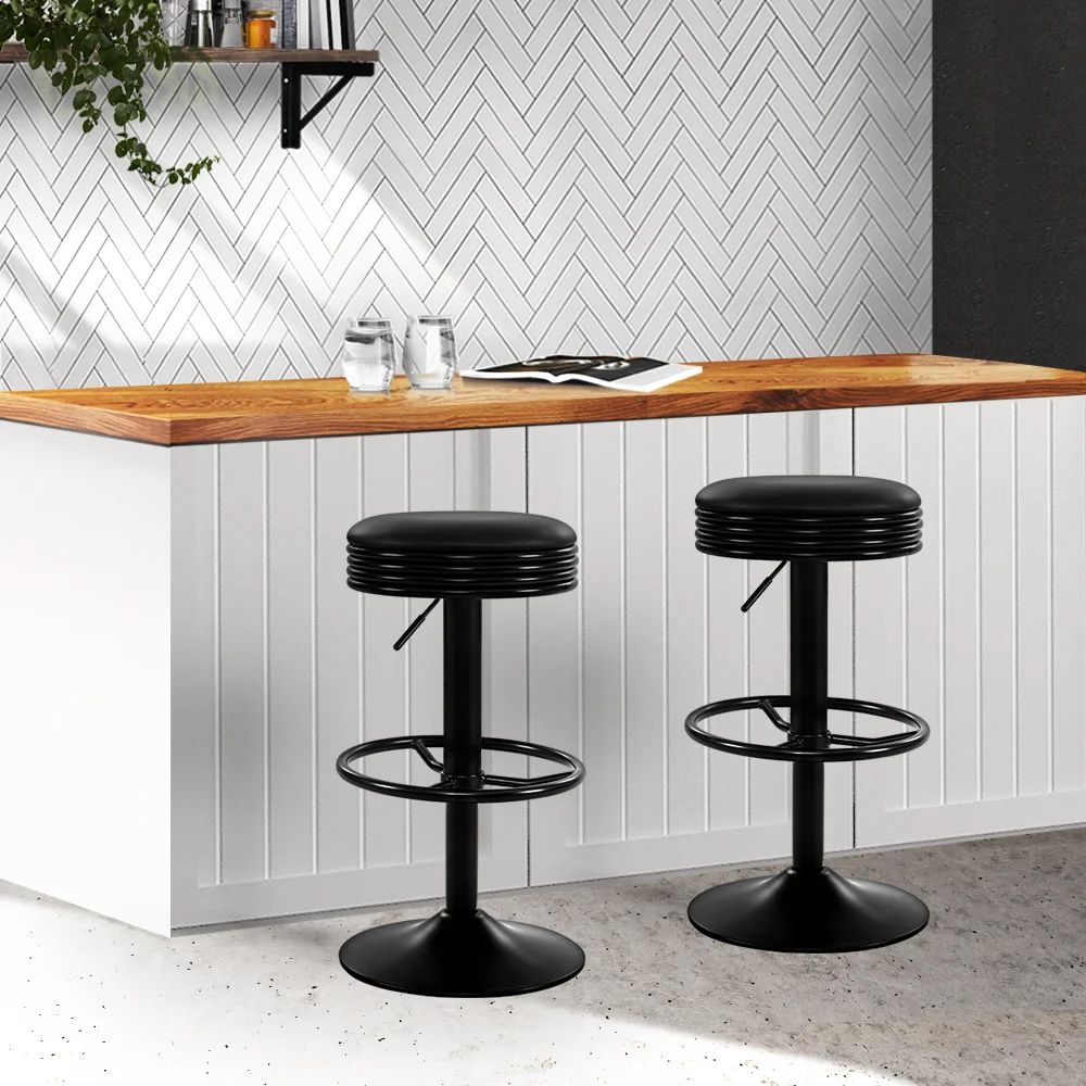 Artiss 2x Black Leather Bar Stools Swivel Adjustable Gas Lift PU Counter Chairs, Full Back, Chrome Base, 53-75cm