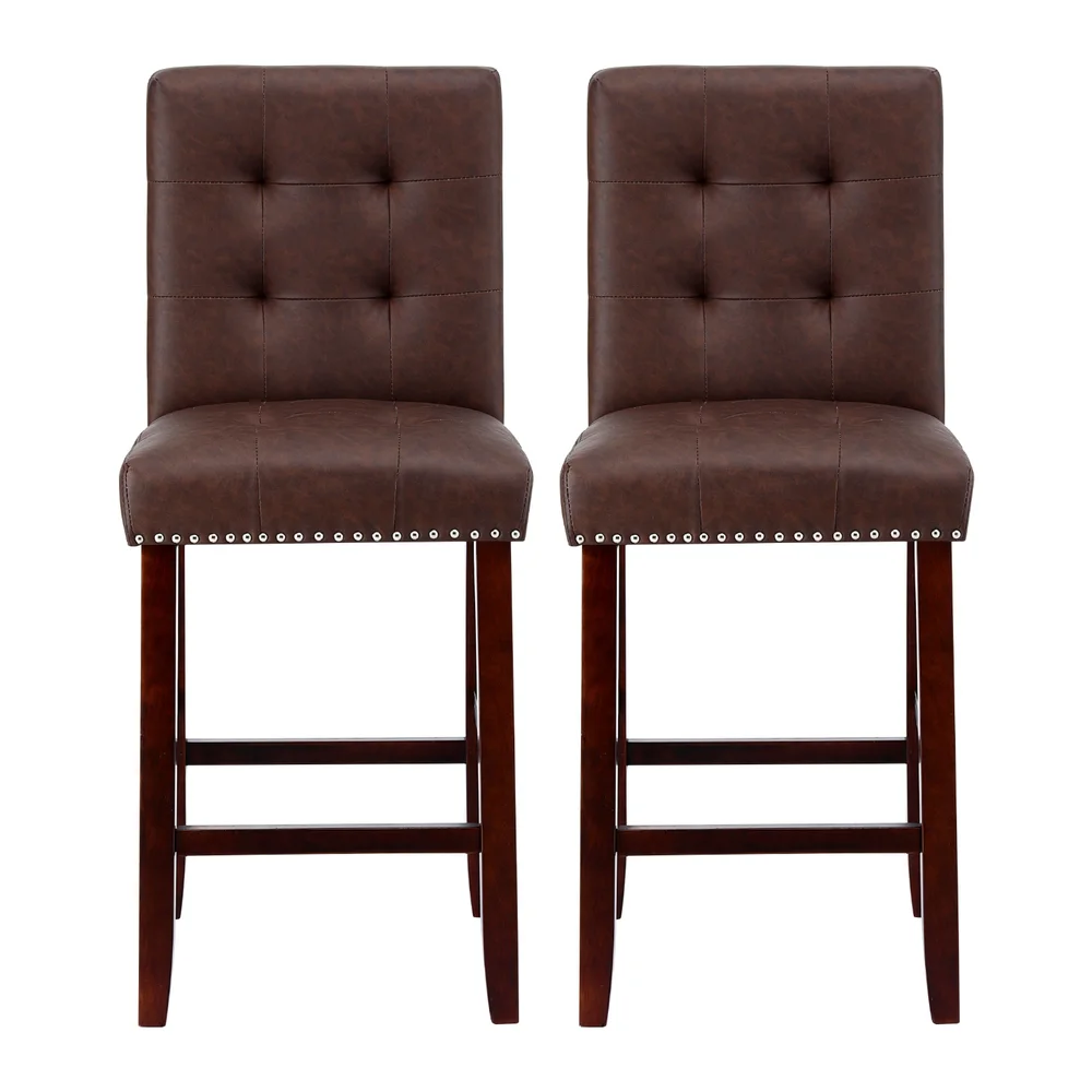 Artiss Ada Brown 2x Bar Stools: PU Leather, High Backrest, Rubber Wood Frame, 67cm Seat Height, 120kg Capacity, Set of 2