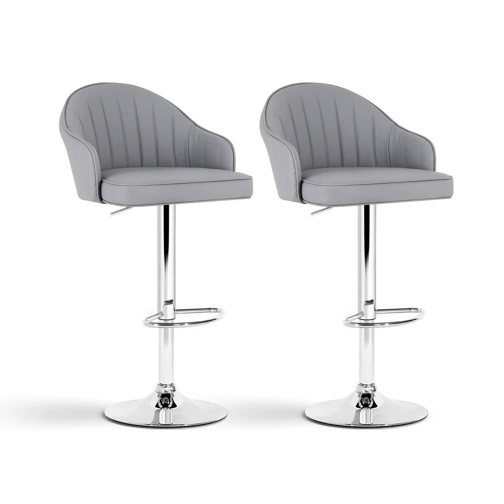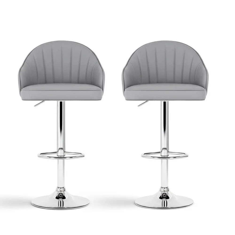 Artiss Set of 2 Grey PU Leather Swivel Bar Stools with Adjustable Gas Lift, Ergonomic Shell Design, and Metal Frame