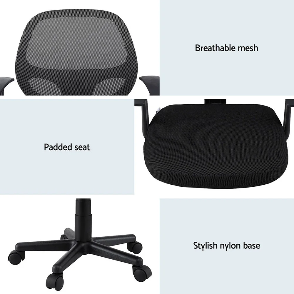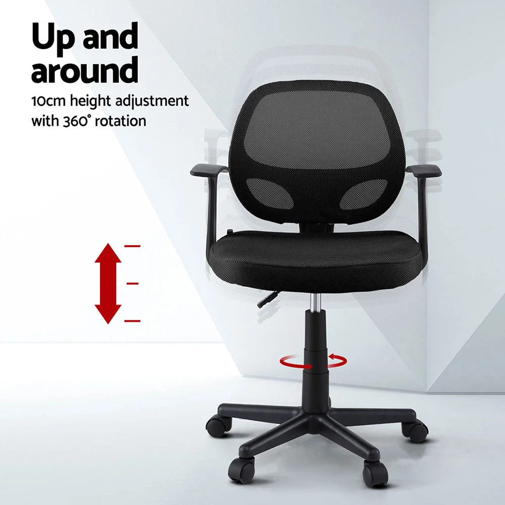 Artiss 2x Mesh Office Chair Black, Ergonomic Mid Back, Adjustable Height, Armrests, 50x48x86-96cm, Home Office