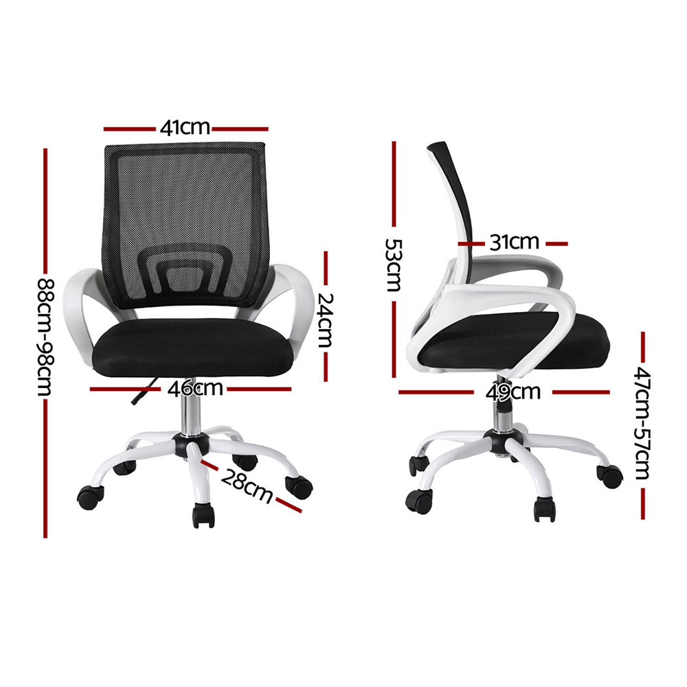 Upgrade your workspace with the Artiss 2x Office Chair Mesh Computer Gaming Desk Chairs. Designed for comfort and practicality, these chairs feature a breathable mid-back mesh for optimal airflow, built-in lumbar support, and 10cm height adjustment. The 360° swivel and smooth mobility, paired with sleek chrome bases and supportive armrests, make them ideal for work, study, or gaming. Their minimalist black-and-white style complements any setting. Easy to assemble and backed by a 1-year warranty, Artiss ensures a perfect blend of style and functionality.