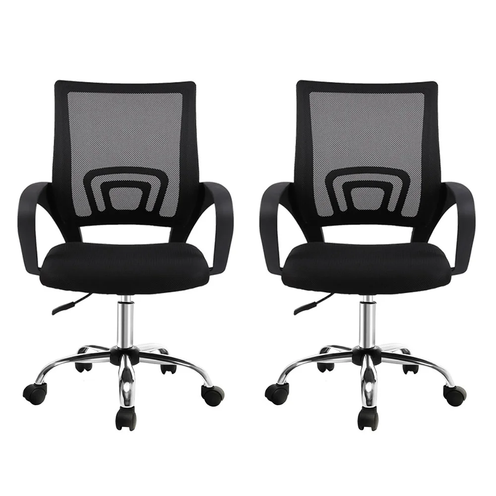 Artiss 2x Mid-Back Mesh Office Chair, Black - Breathable, Lumbar Support, 360° Swivel, Adjustable Height, Chrome Base