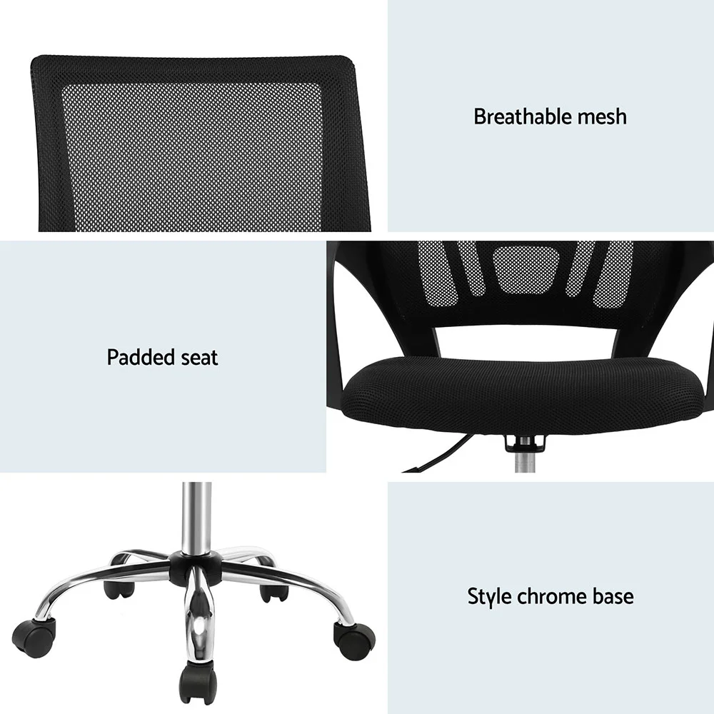 Artiss Mid-Back Mesh Office Chair - Ergonomic, Breathable, Height Adjustable with 360° Swivel & Chrome Base