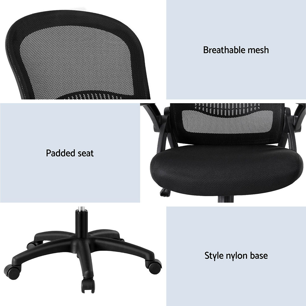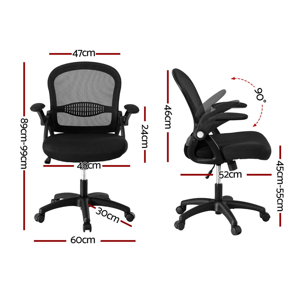 Artiss 2x Mesh Office Chair Set, Mid Back, Flip-Up Armrests, Adjustable Height, Lumbar Support, Black, 120kg
