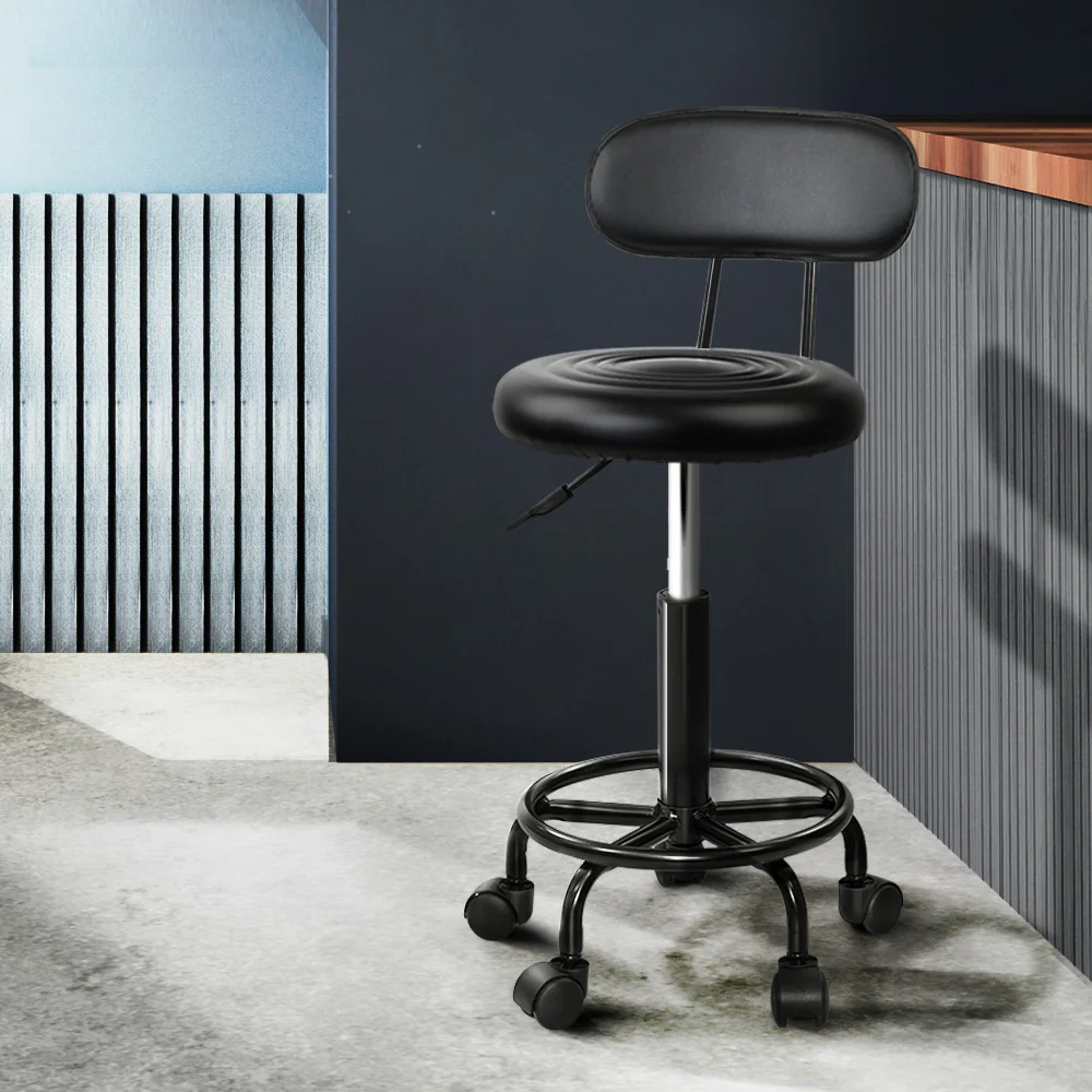 Artiss Salon Stool Swivel Chair, PVC Leather, Adjustable Height, Black, 49.5cm-60cm, Stylish Comfort for Any Space