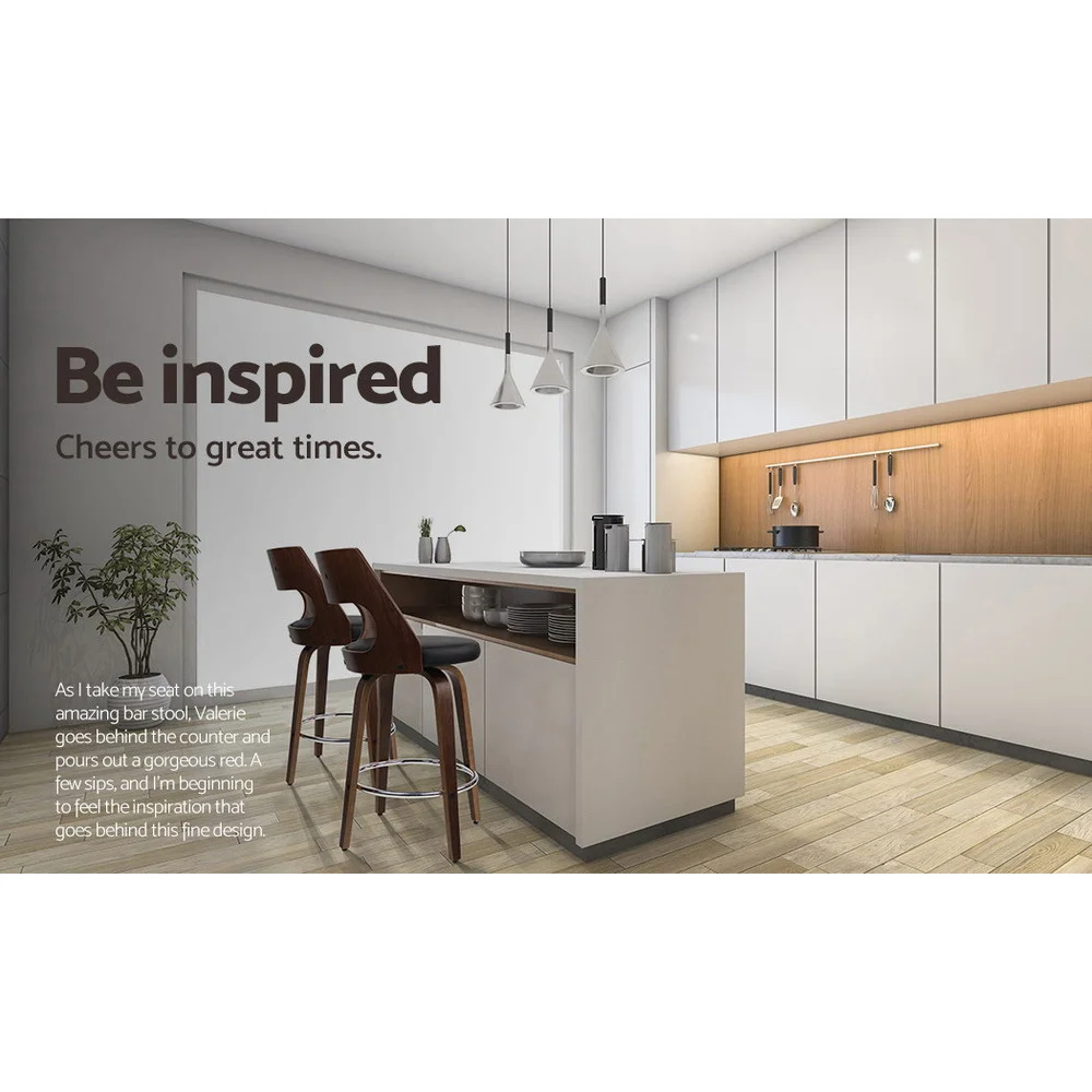 Artiss Bentwood Bar Stools Set of 2 - PU Leather Seat, Walnut Finish, Metal Footrest, Anti-Slip Feet, 130kg Capacity