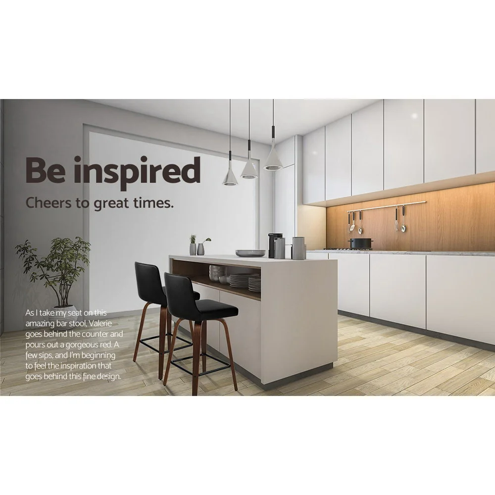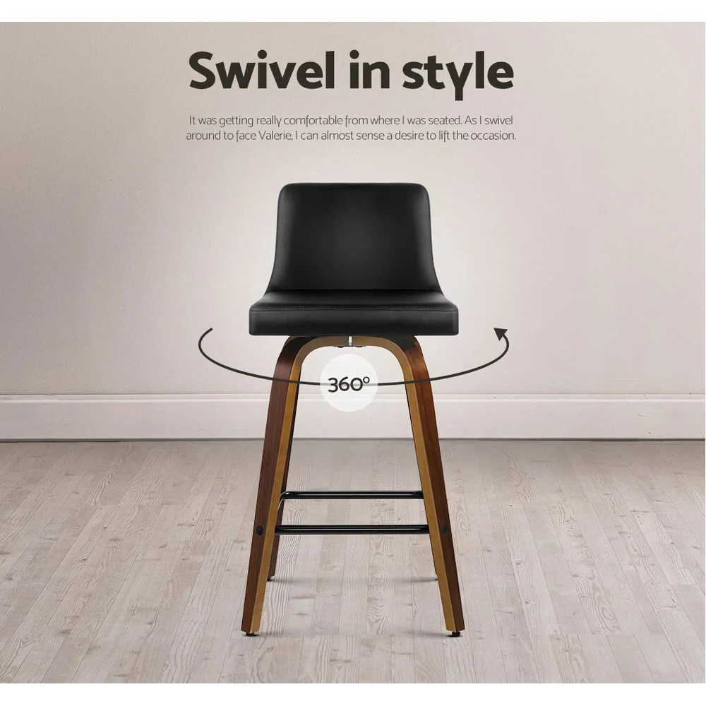 Artiss 2x Bar Stools - Swivel 360° Leather Padded Seat, Wooden Frame, Chrome Footrest, Anti-Slip Feet, 87cm Height