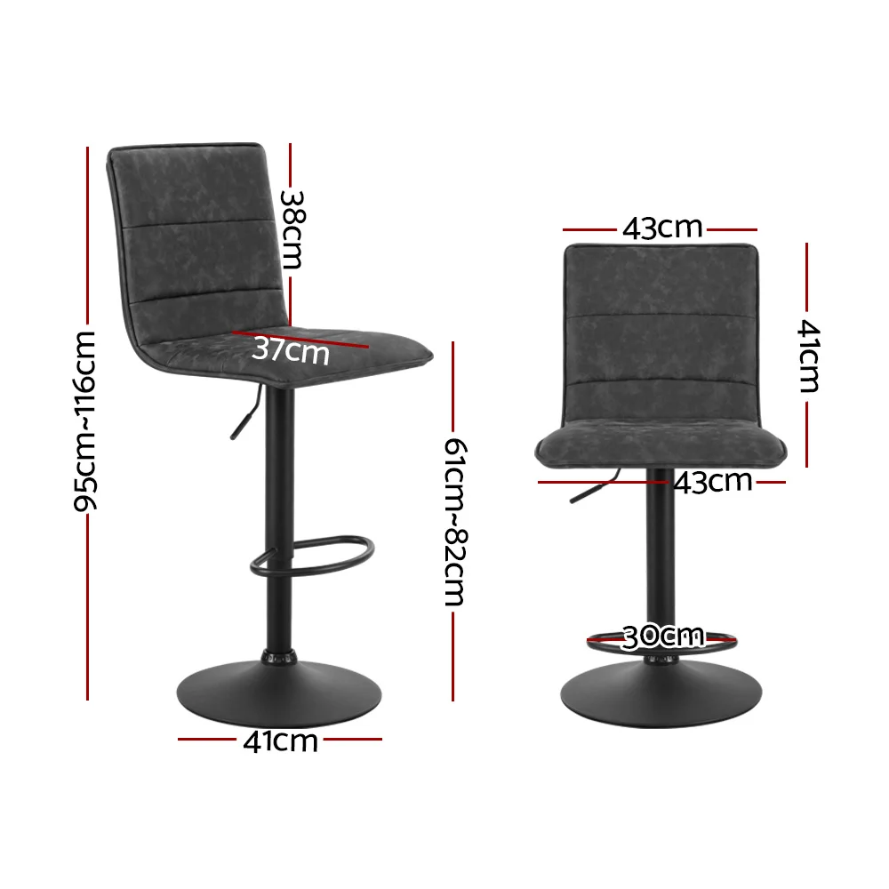 Artiss 2x Grey Vintage Leather Bar Stools, Adjustable Gas Lift, 360° Swivel, High Back, Footrest, Floor Protector