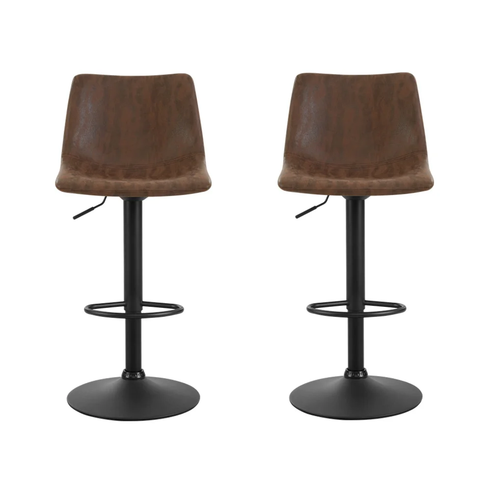 Artiss 2x Vintage Swivel Bar Stools, Brown Faux Leather, Adjustable 60-81cm, 360° Swivel, Black Powder-Coated Base
