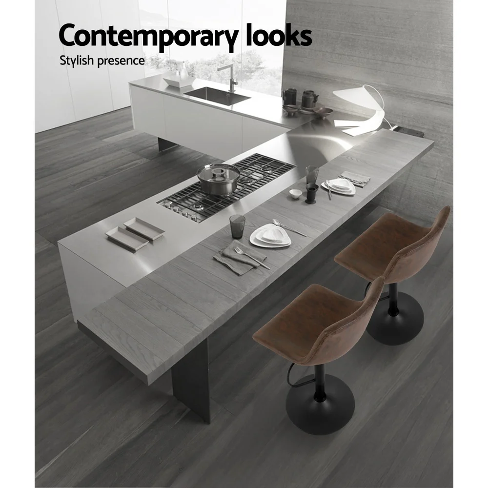 Elevate your home dining experience with the Artiss 2x Bar Stools, perfect for those who value both style and comfort. These bar stools boast a classic design with a contemporary twist, upholstered in premium vintage faux leather that exudes elegance. The extra thick foam padded seat and supportive high backrest offer the utmost comfort, while the 360-degree swivel feature and semicircular footrest provide ease of movement and relaxation. Adjust the stool's height effortlessly with the SGS-tested gas lift, and enjoy stability with the corrosion-resistant black powder-coated steel base. Plus, the floor protector ensures your floors remain scratch-free.