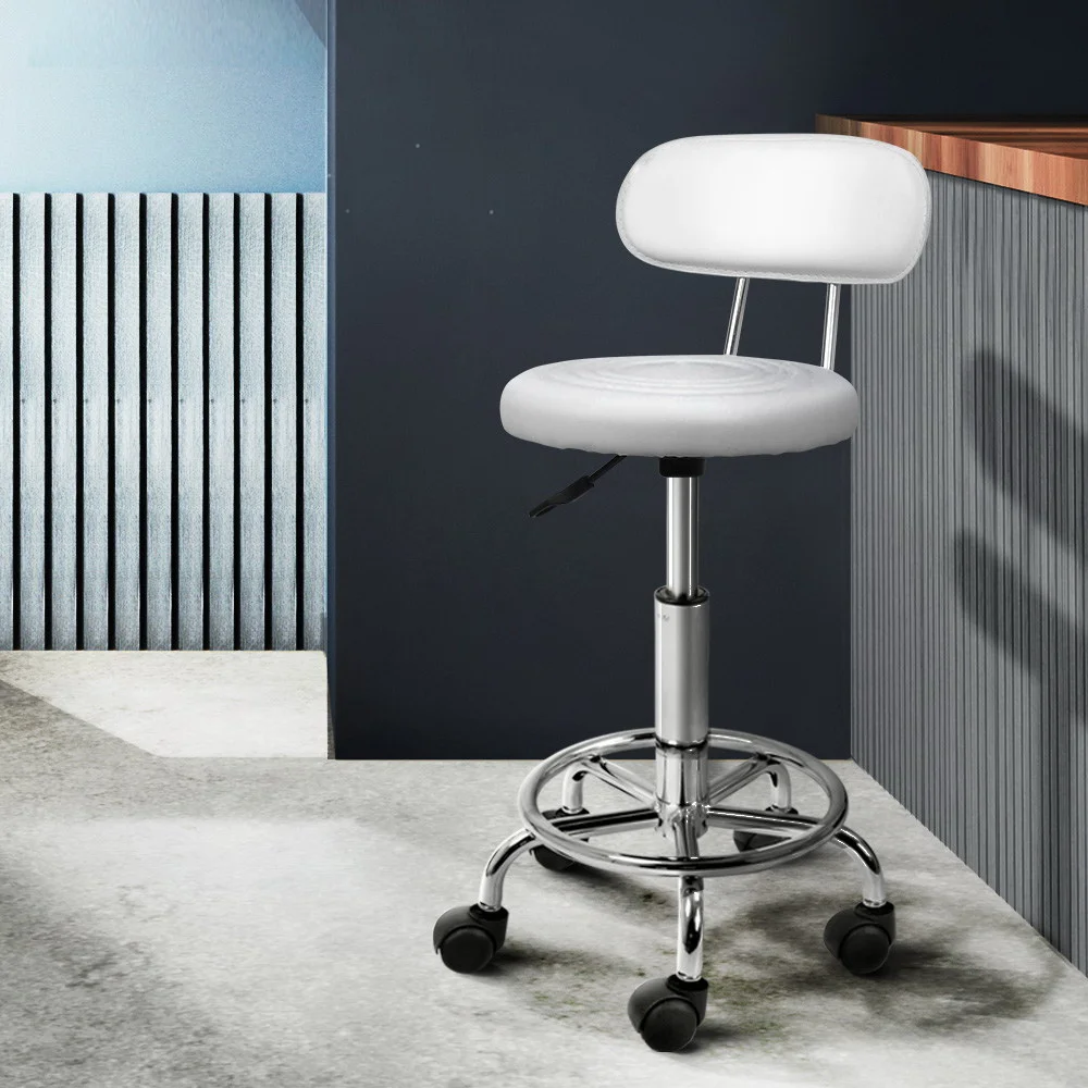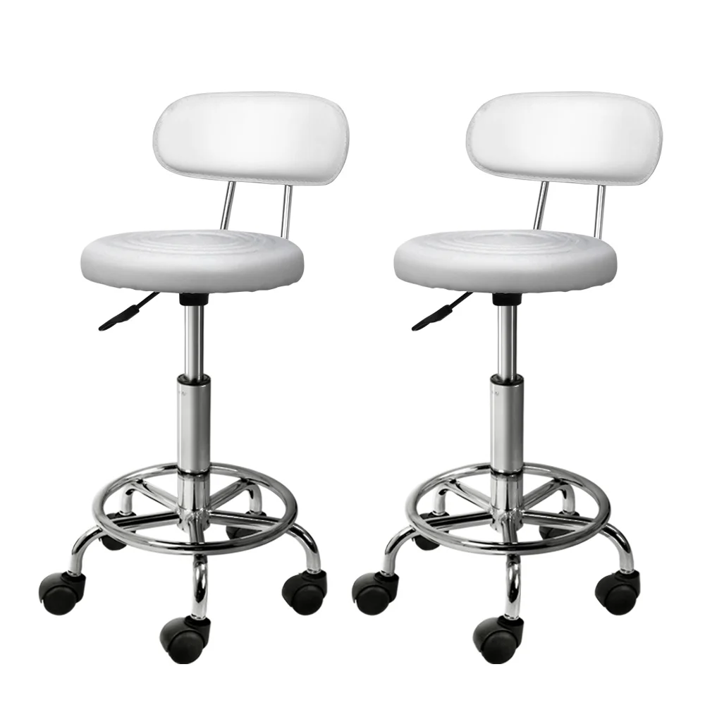Artiss 2x White Salon Swivel Stools - PU Leather, Adjustable Height, Chrome Base, 360° Rotatable, Comfort Backrest