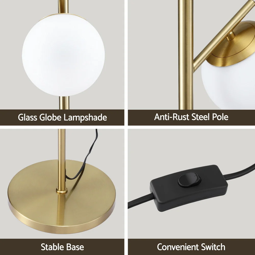 Artiss 3-Light Tree Floor Lamp 165cm - Modern Standing Light with Sphere Glass Shades, Metal Pole & Stable Base