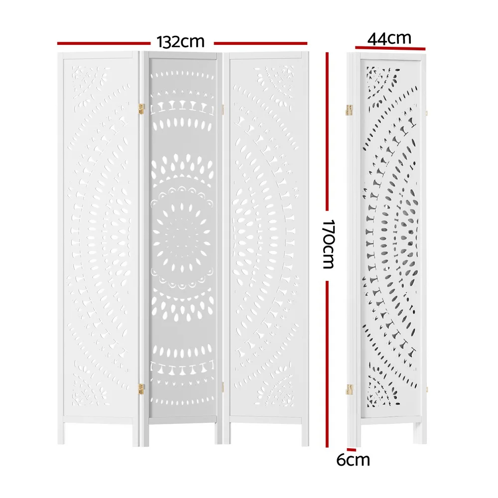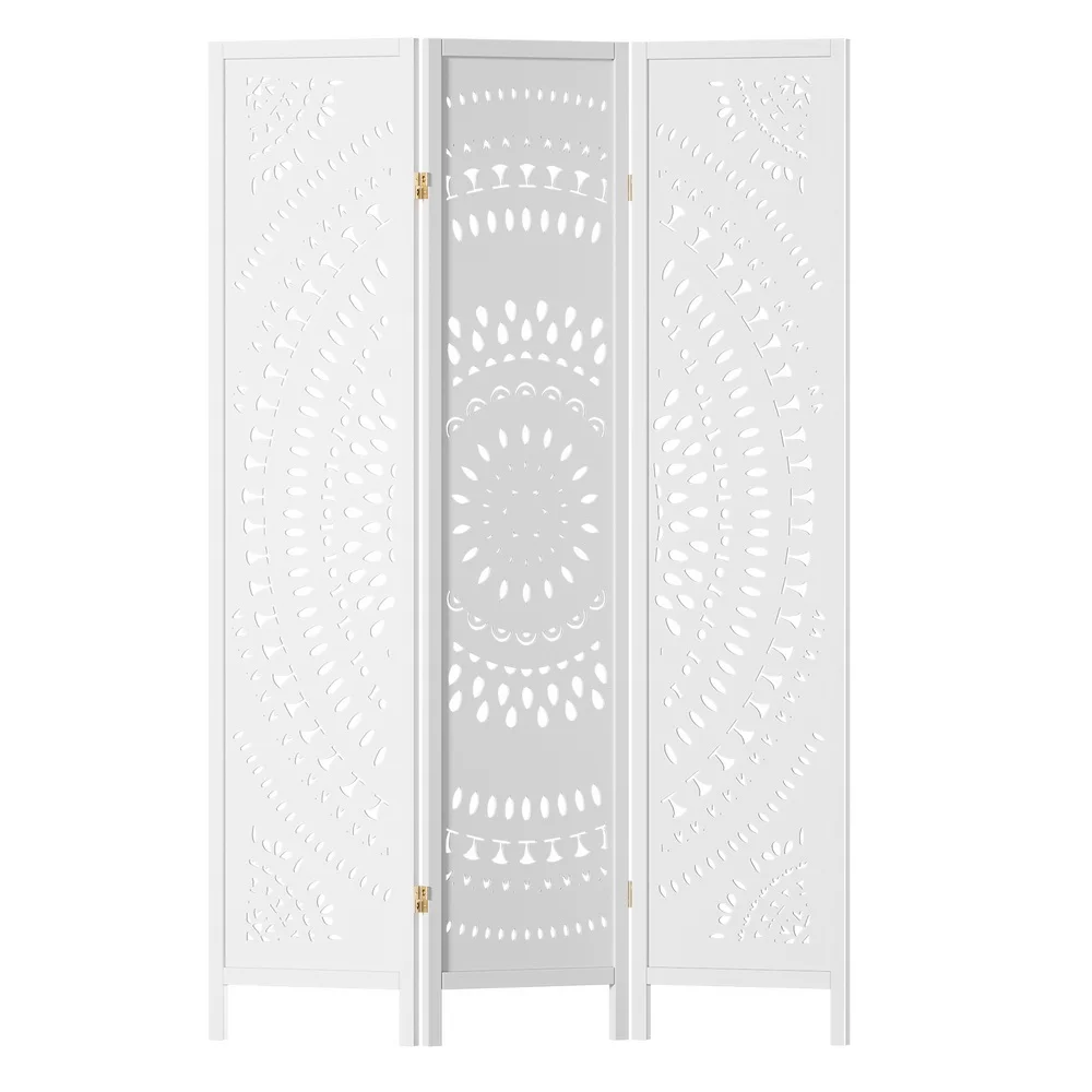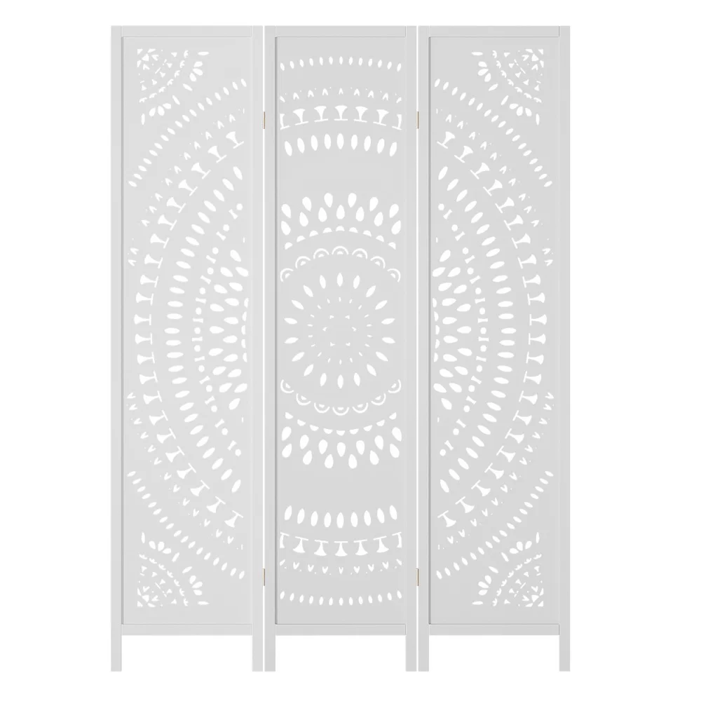 Artiss 3 Panel Room Divider, Circle Design, 132x170cm, White, Pine Wood & MDF, Foldable, for Home & Office Privacy