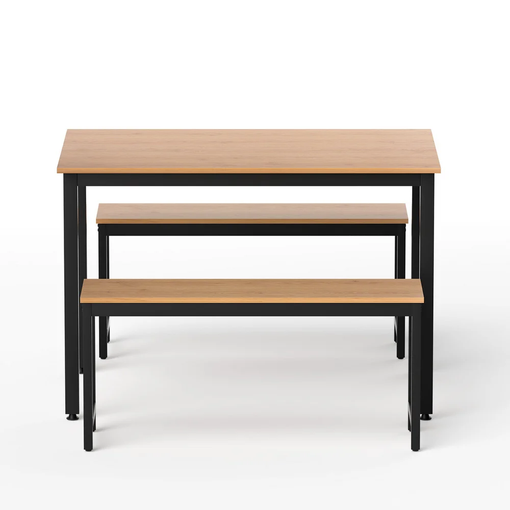 Artiss 3-Piece Dining Set: Natural Oak Table & Benches, Space-Saving Metal Frame, 110cm x 70cm, Scandinavian Style