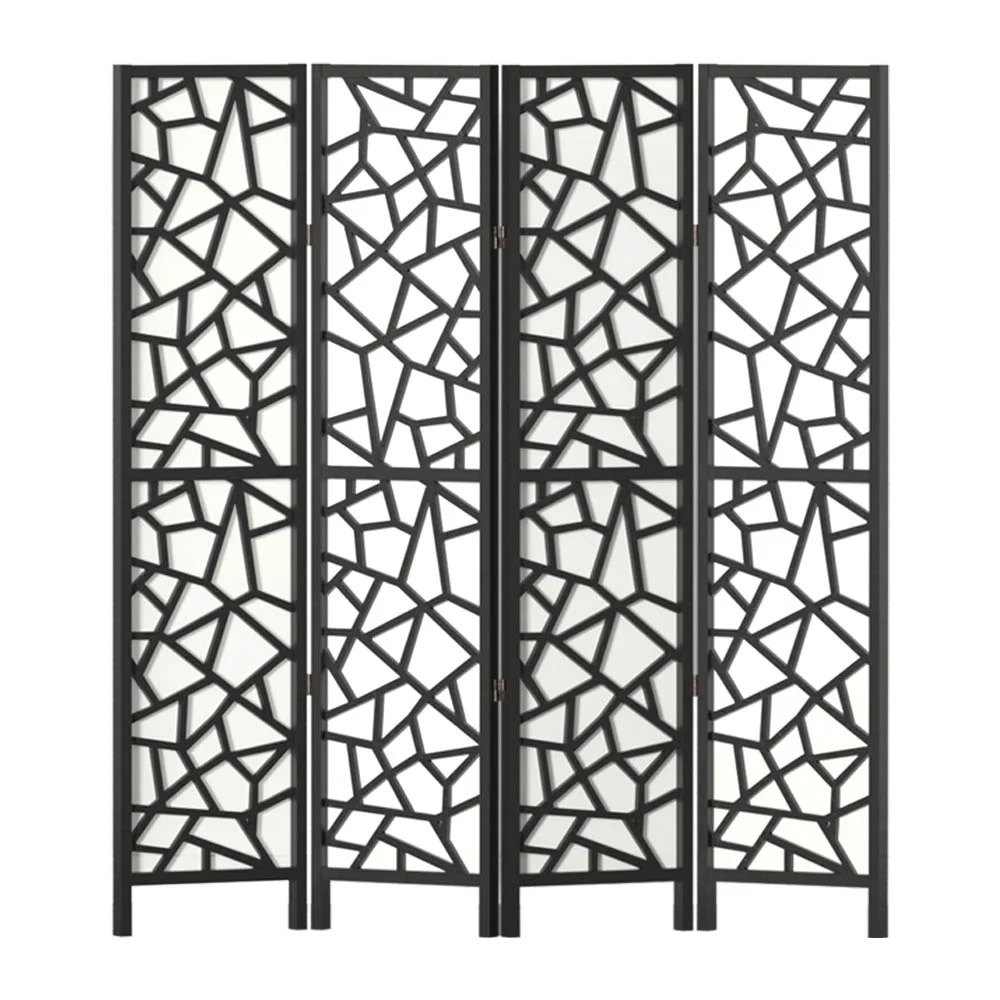 Artiss 4 Panel Room Divider Screen - 162x170cm Clover Black | Eco-Friendly, Portable, Pine Wood Design, Easy Assembly