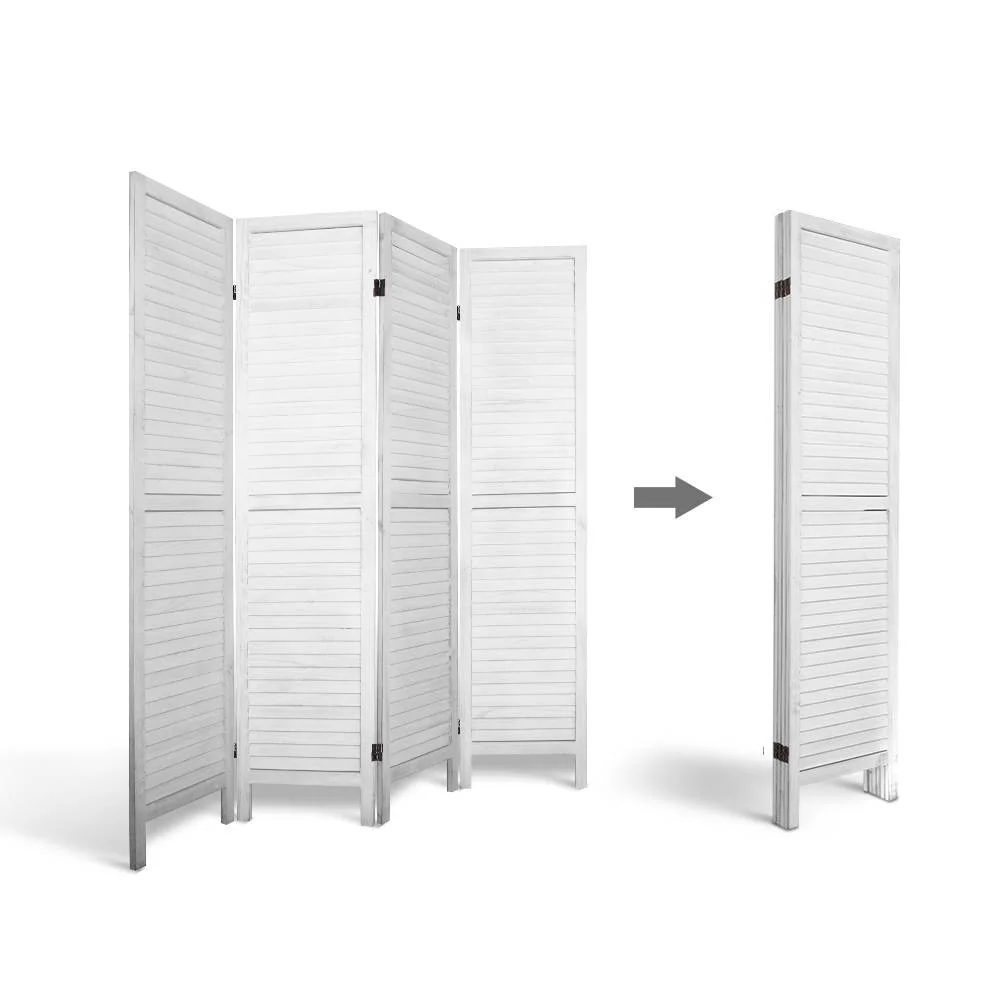 Artiss 4 Panel Room Divider Screen - 163x170cm, White, Eco-Friendly Paulownia Wood, Foldable & Durable Design