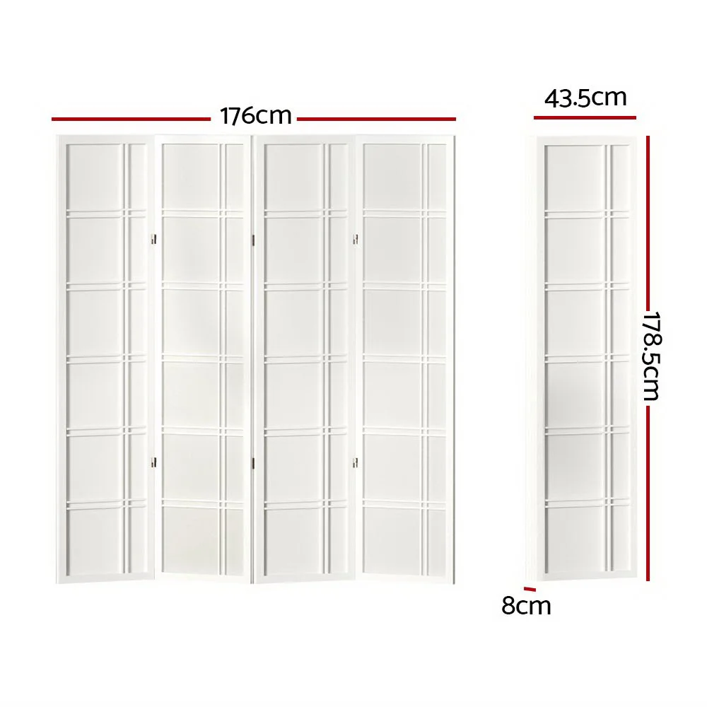 Artiss 4 Panel Room Divider Screen - 163x170cm, White, Eco-Friendly Paulownia Wood, Foldable & Durable Design